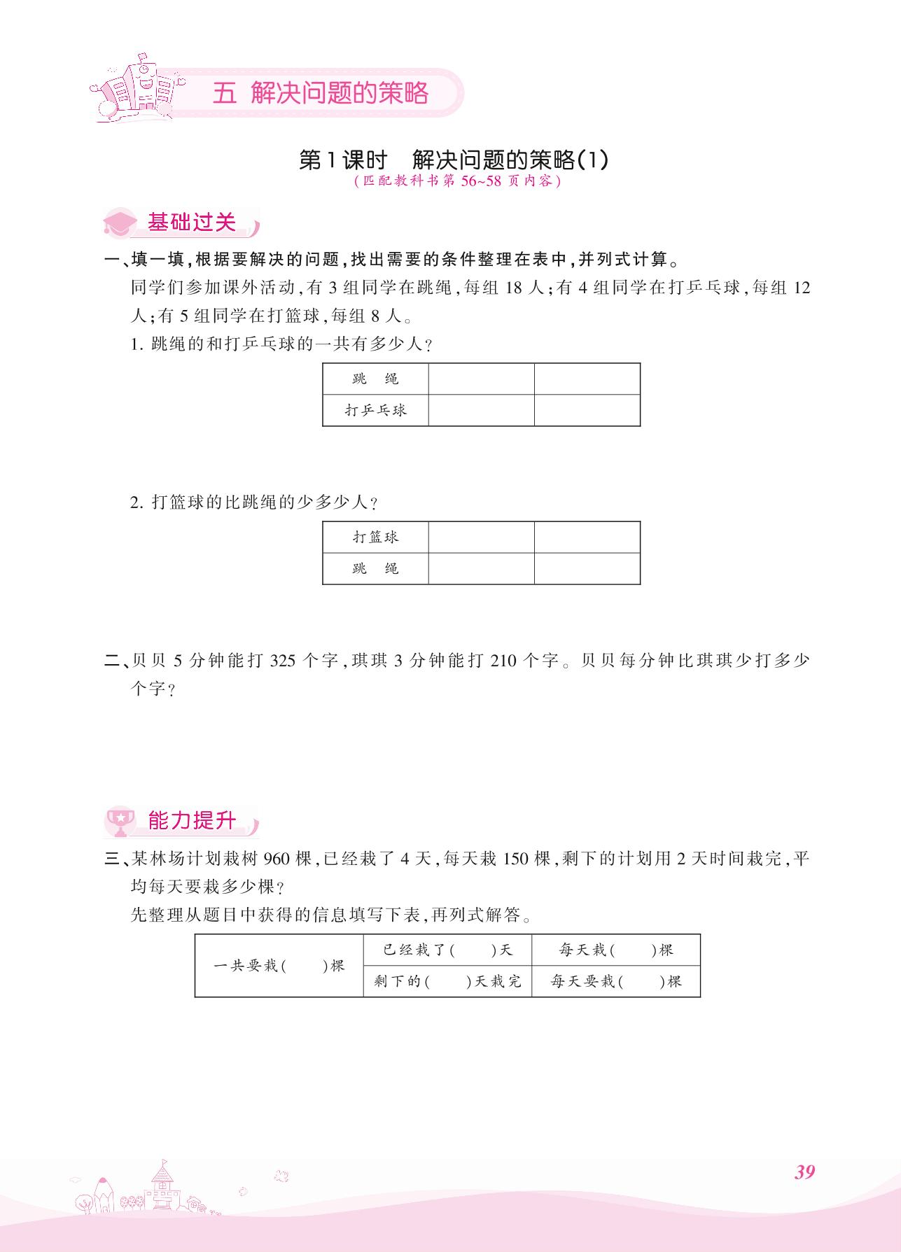 2021上册四年级数学苏教版 五 解决问题的策略——第1课时 解决问题的策略(1)