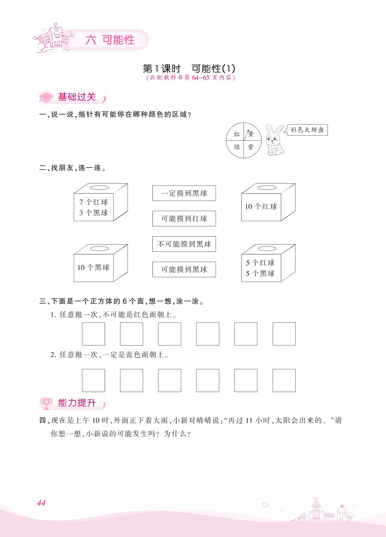 2021上册四年级数学苏教版 六 可能性——第1课时 可能性(1)