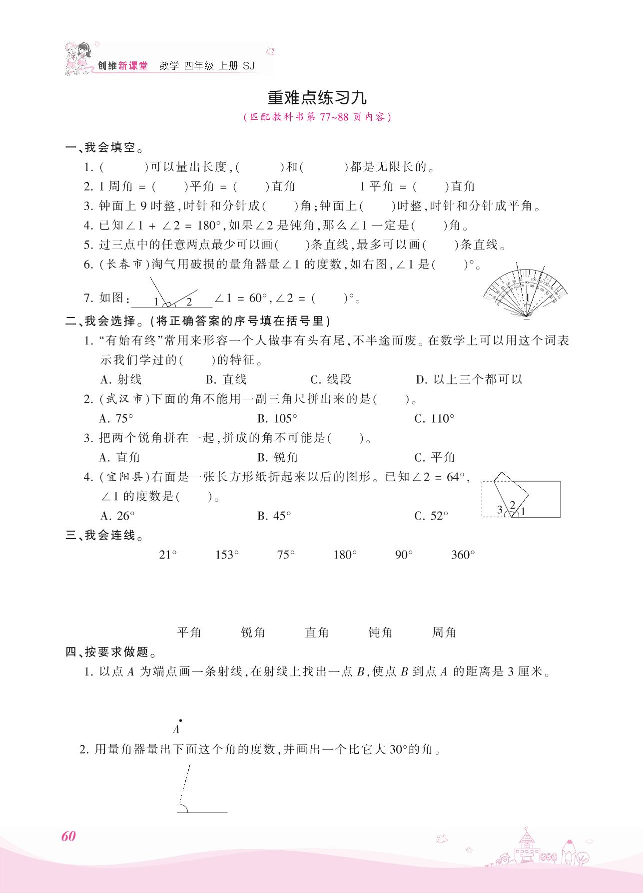 2021上册四年级数学苏教版 八 垂线与平行线——重难点练习九