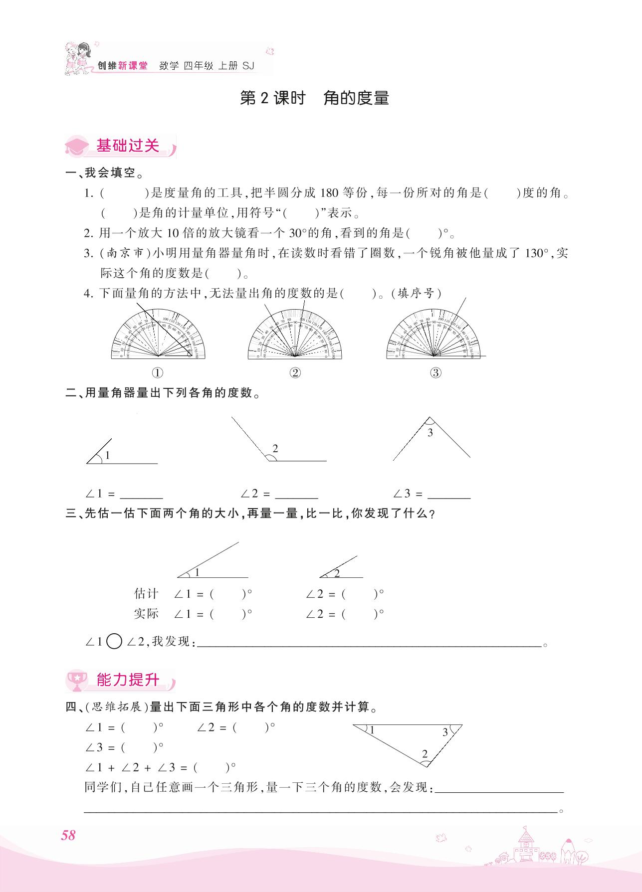 2021上册四年级数学苏教版 八 垂线与平行线——第2课时 角的度量