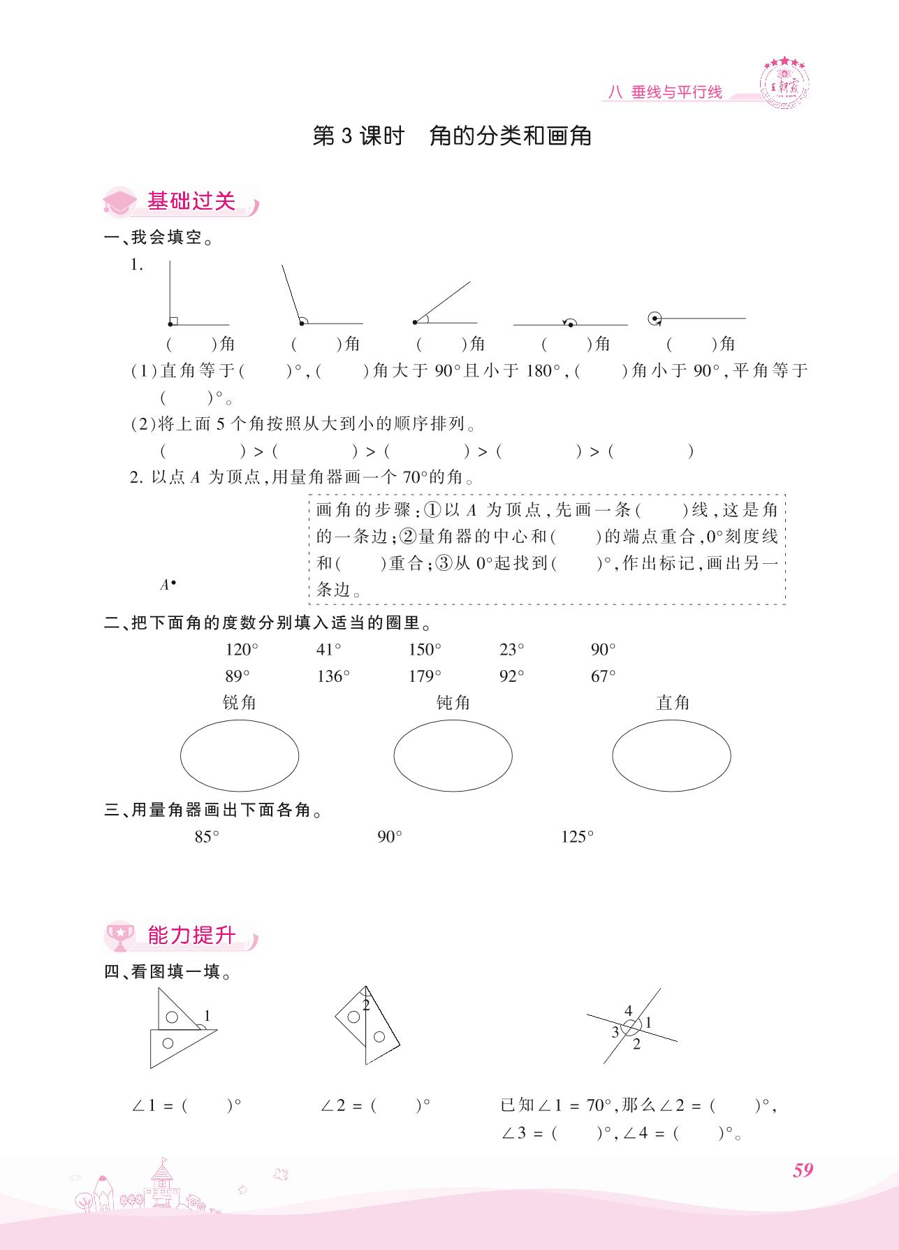 2021上册四年级数学苏教版 八 垂线与平行线——第3课时 角的分类和画角