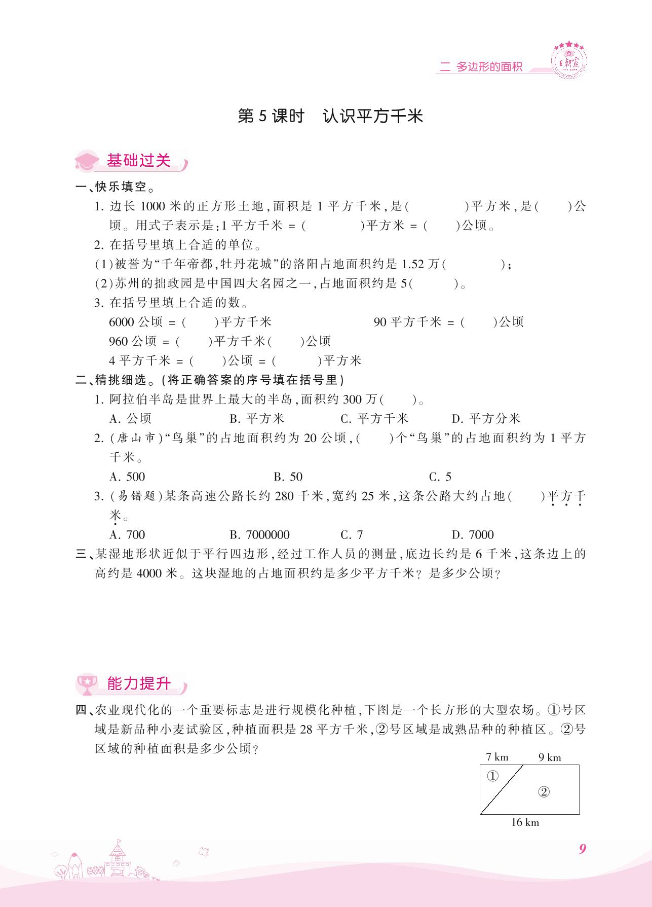 2021上册五年级数学苏教版 二 多边形的面积 ——第5课时 认识平方千米