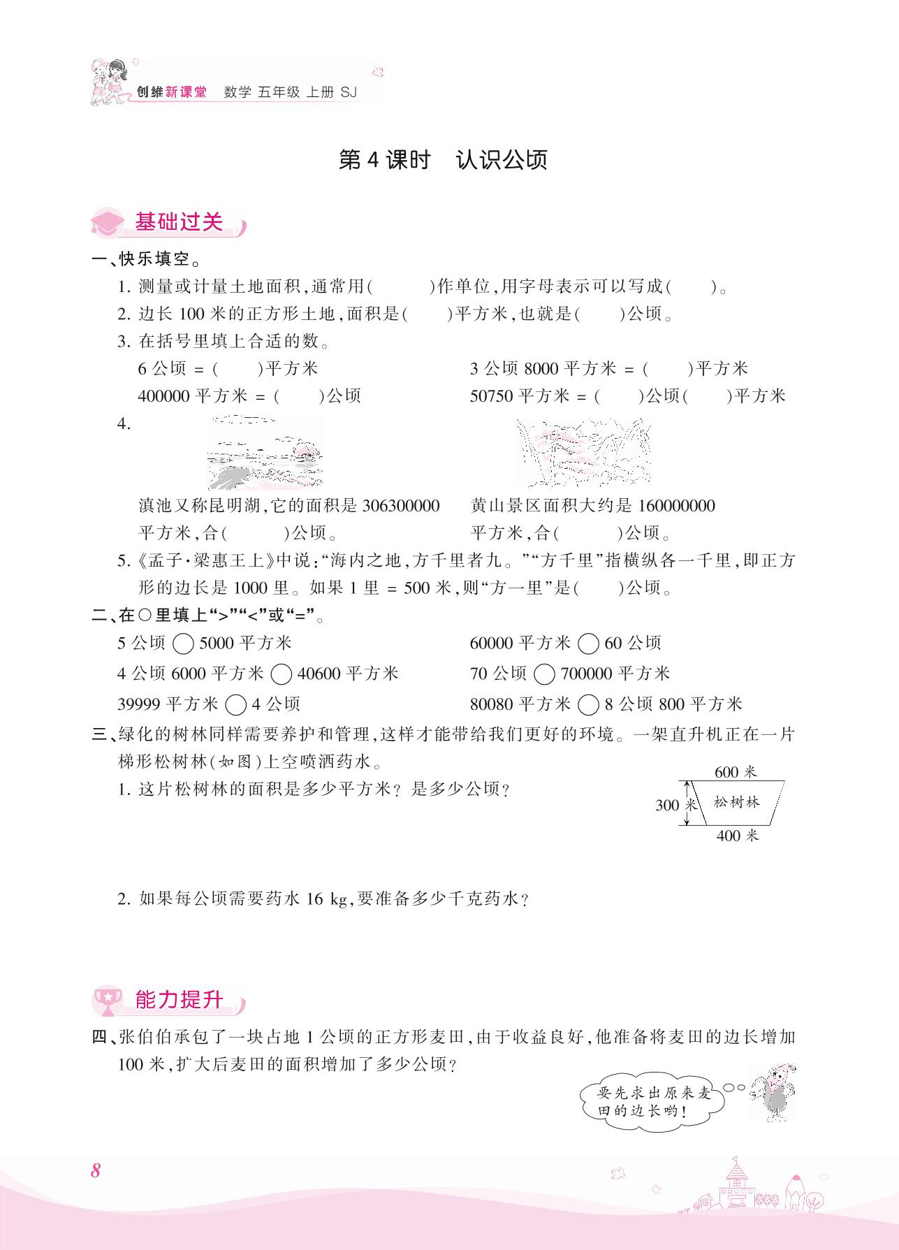 2021上册五年级数学苏教版 二 多边形的面积 ——第4课时 认识公顷
