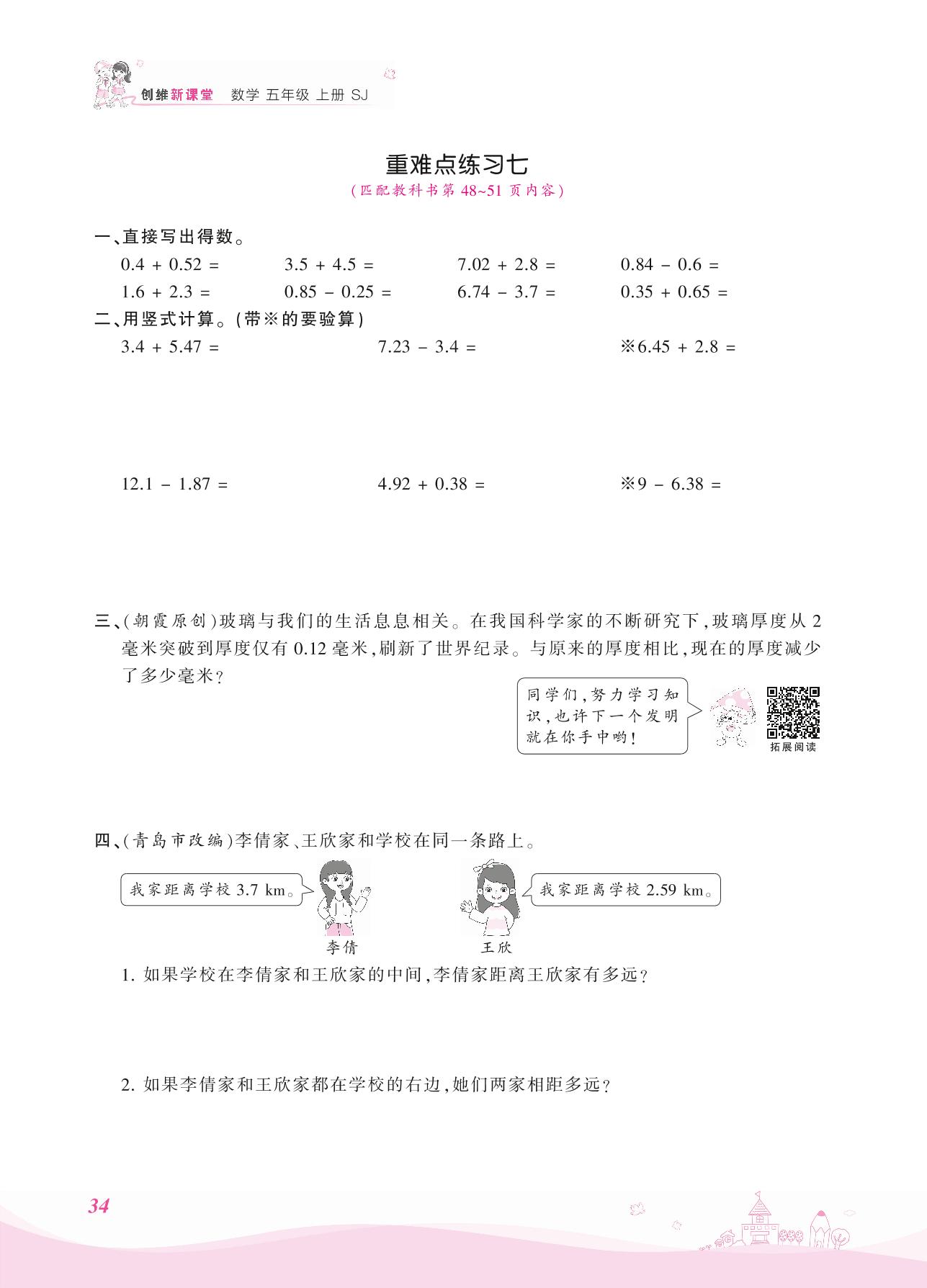 2021上册五年级数学苏教版 四 小数加法和减法——重难点练习七