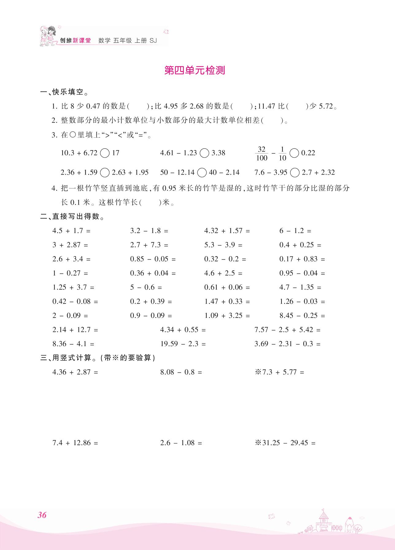 2021上册五年级数学苏教版 四 小数加法和减法——第四单元检测