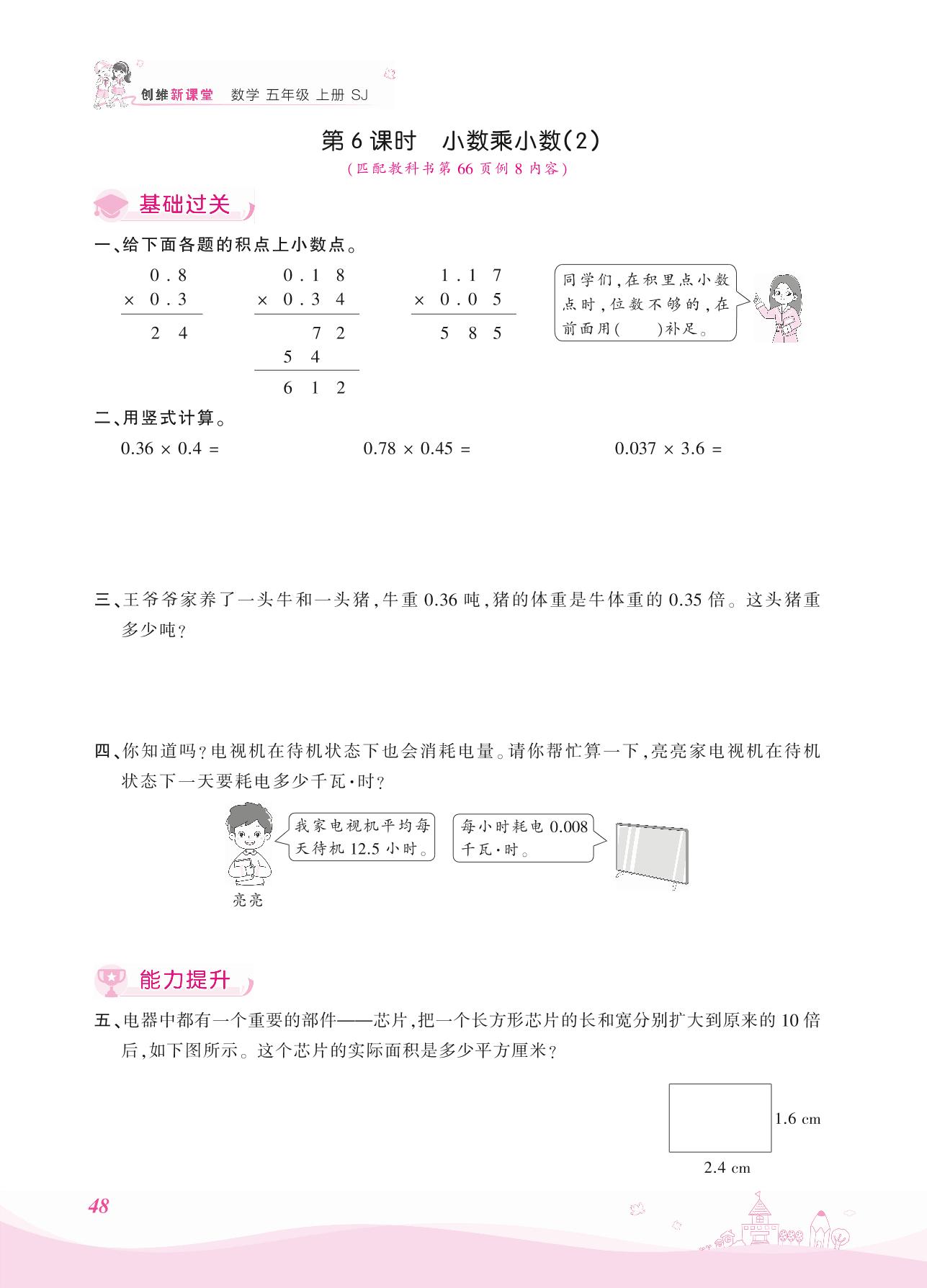 2021上册五年级数学苏教版 五 小数乘法和除法——第6课时 小数乘小数(2)
