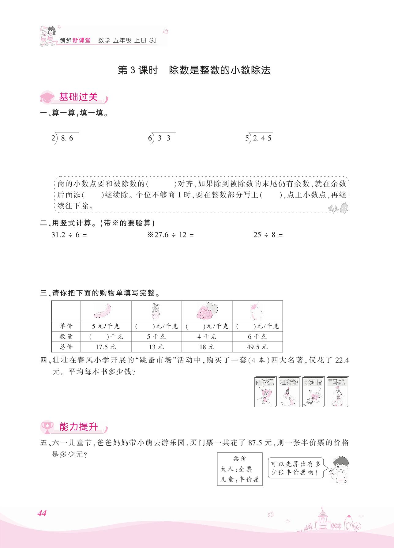 2021上册五年级数学苏教版 五 小数乘法和除法——第3课时 除数是整数的小数除法