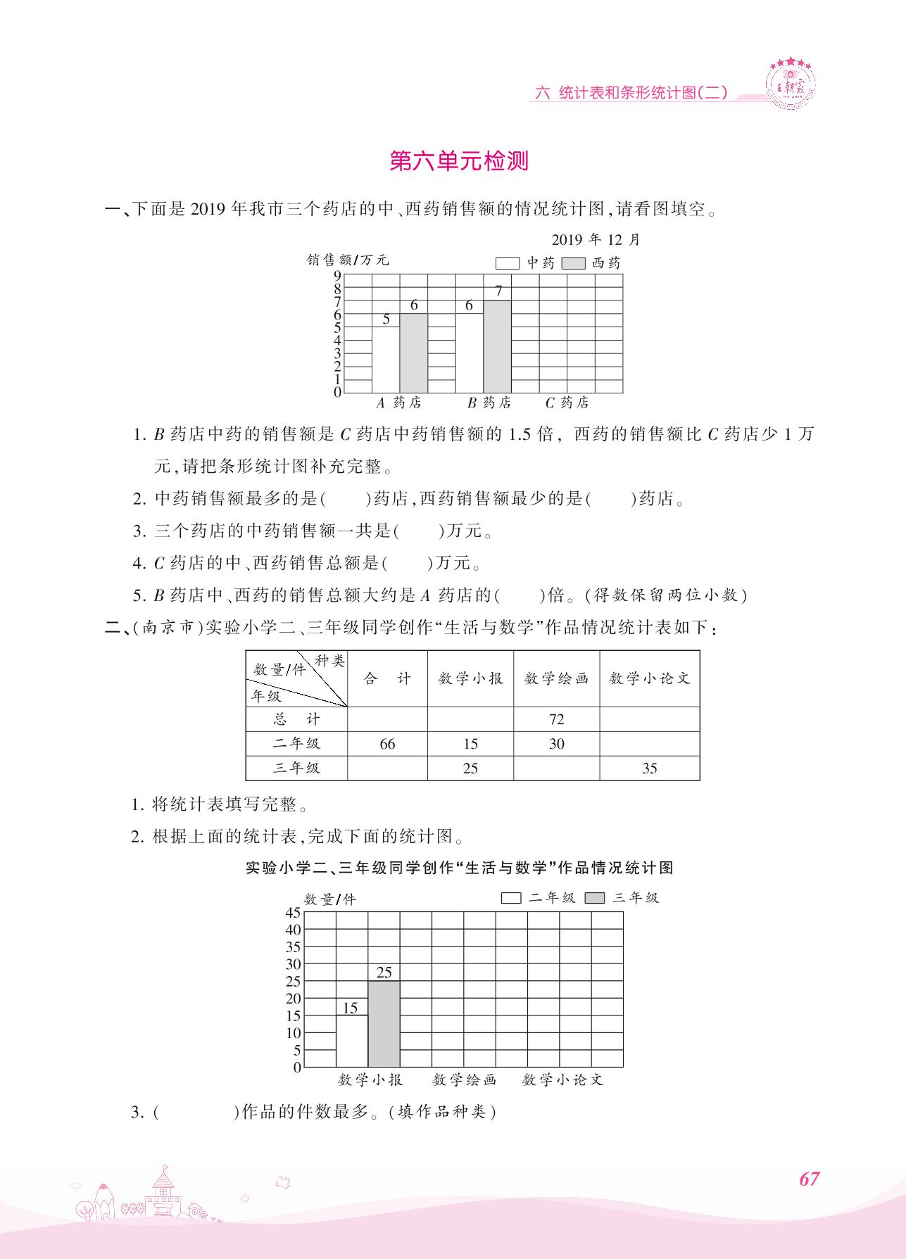 2021上册五年级数学苏教版 六 统计表和条形统计图(二)——第六单元检测