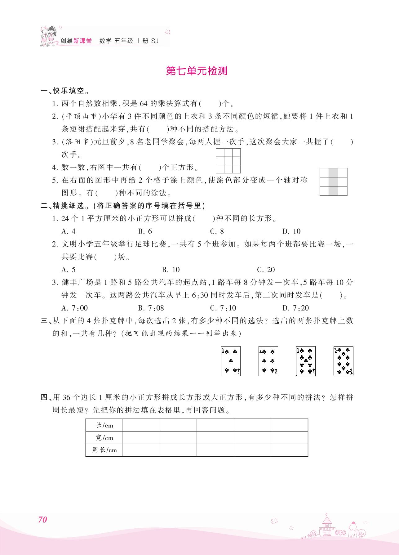 2021上册五年级数学苏教版 七 解决问题的策略——第七单元检测