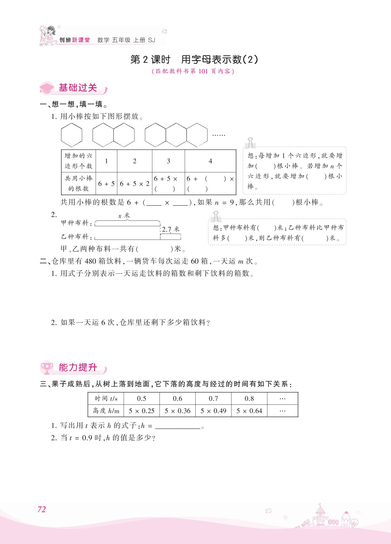 2021上册五年级数学苏教版 八 用字母表示数——第2课时 用字母表示数(2)