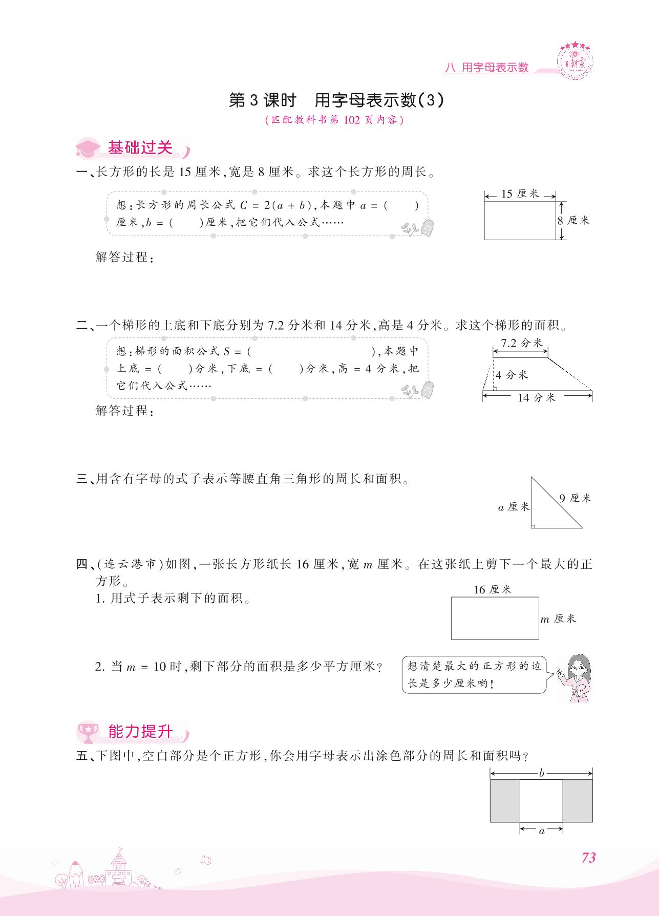 2021上册五年级数学苏教版 八 用字母表示数——第3课时 用字母表示数(3)