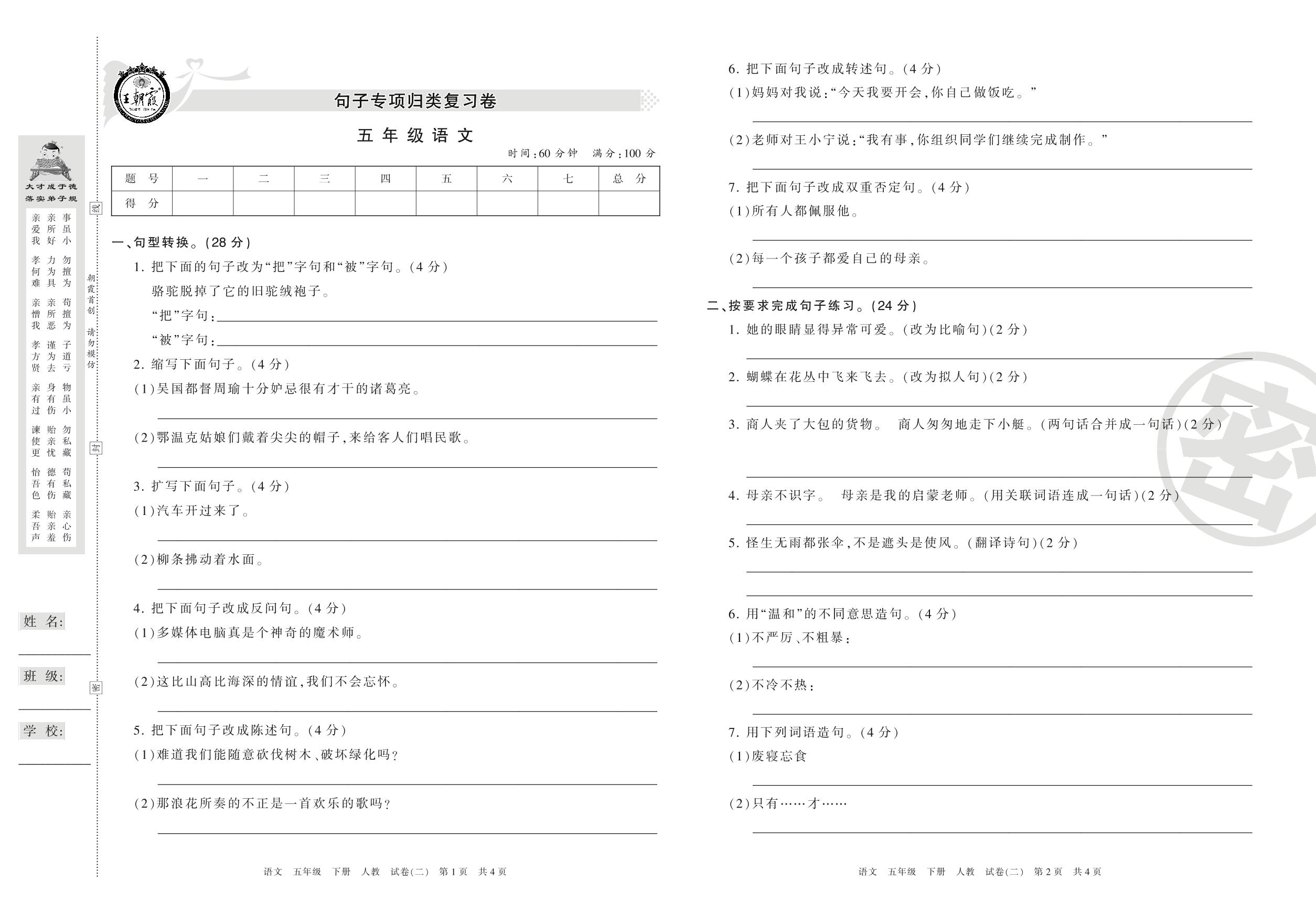 王朝霞期末专项卷五年级下册语文(人教版)_R210801211452【2】