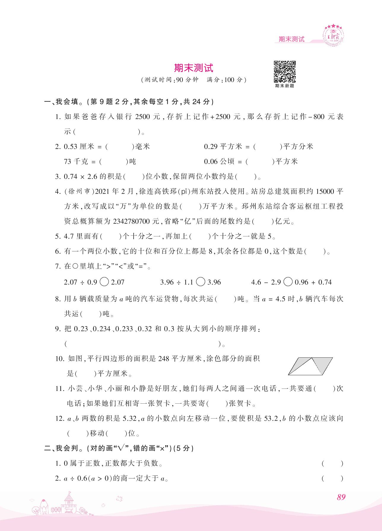 2021上册五年级数学苏教版 期末测试