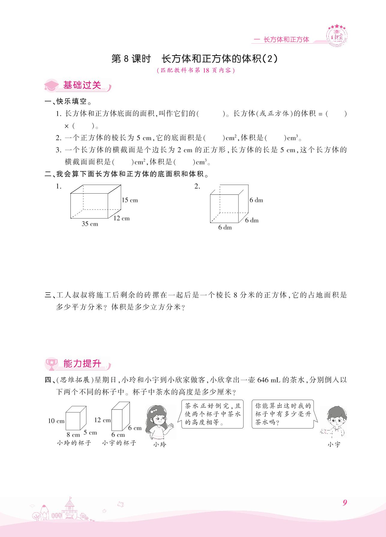 2021上册六年级数学苏教版 一 长方体和正方体——第8课时 长方体和正方体的体积(2)