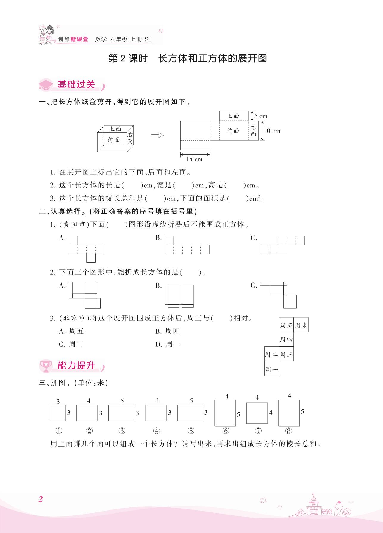 2021上册六年级数学苏教版 一 长方体和正方体——第2课时 长方体和正方体的展开图