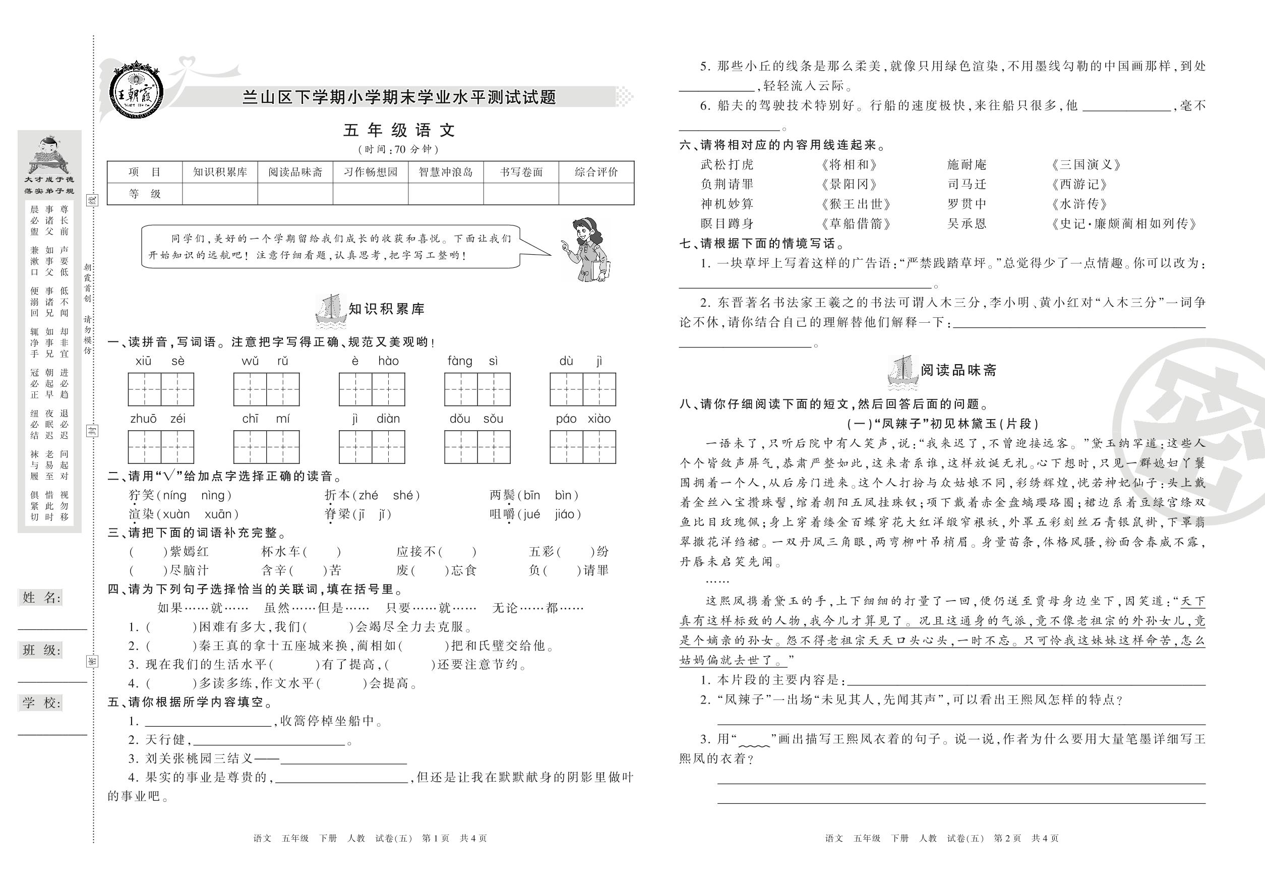 2015-2016学年第二学期临沂市兰山区五年级语文试卷(人教版)【5】