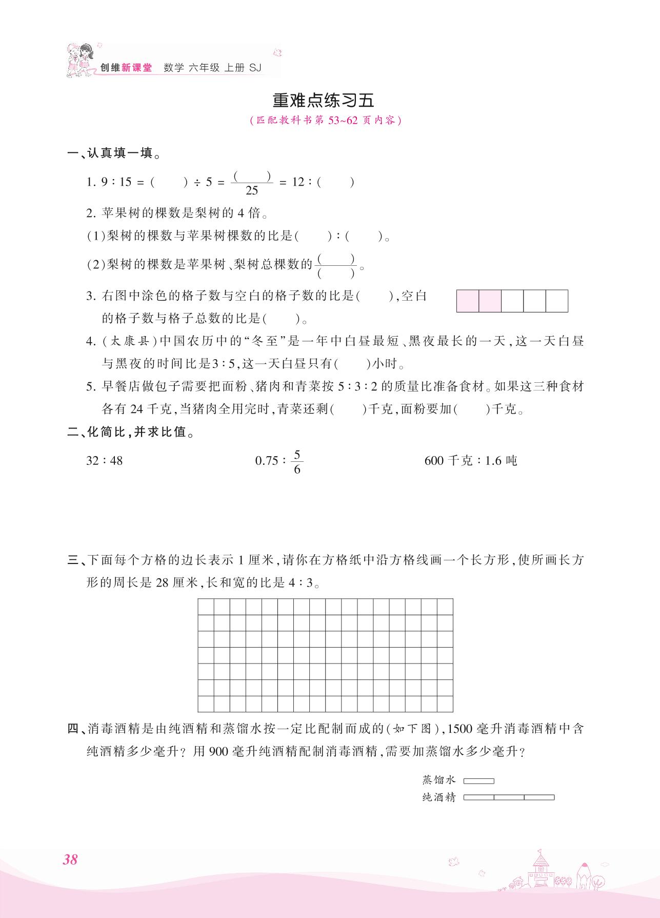 2021上册六年级数学苏教版 三 分数除法——重难点练习五