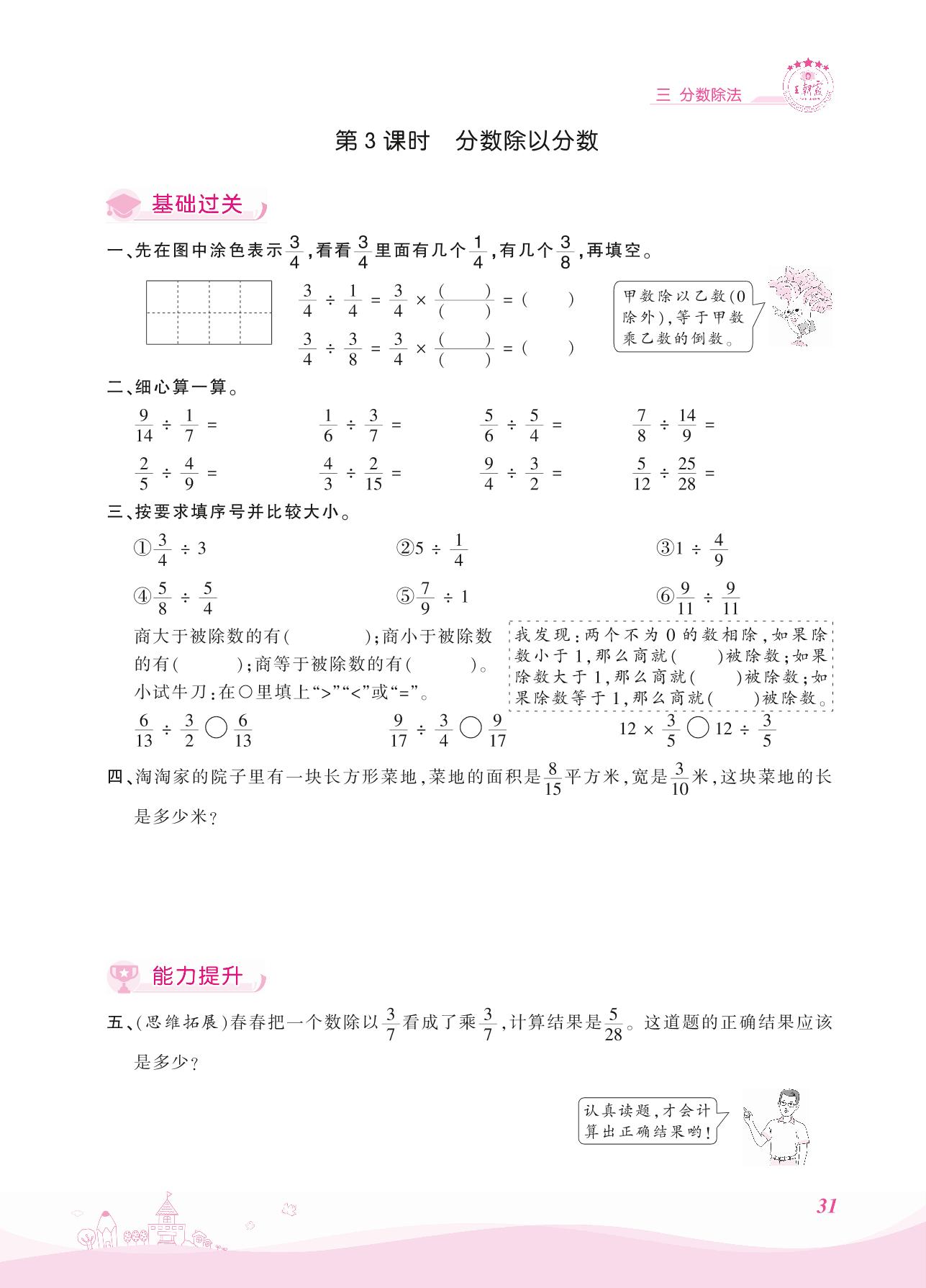 2021上册六年级数学苏教版 三 分数除法——第3课时 分数除以分数