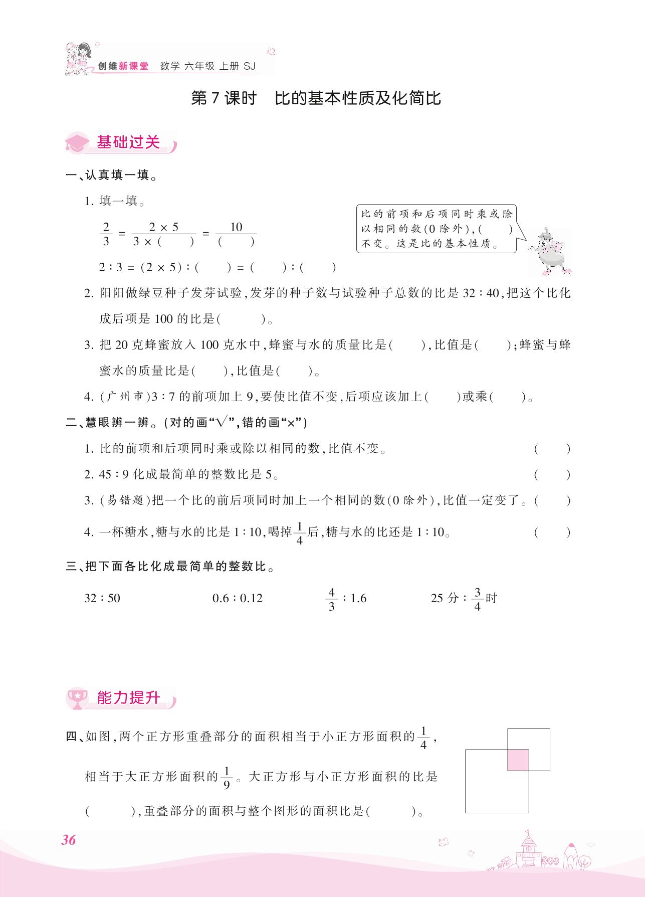 2021上册六年级数学苏教版 三 分数除法——第7课时 比的基本性质及化简比