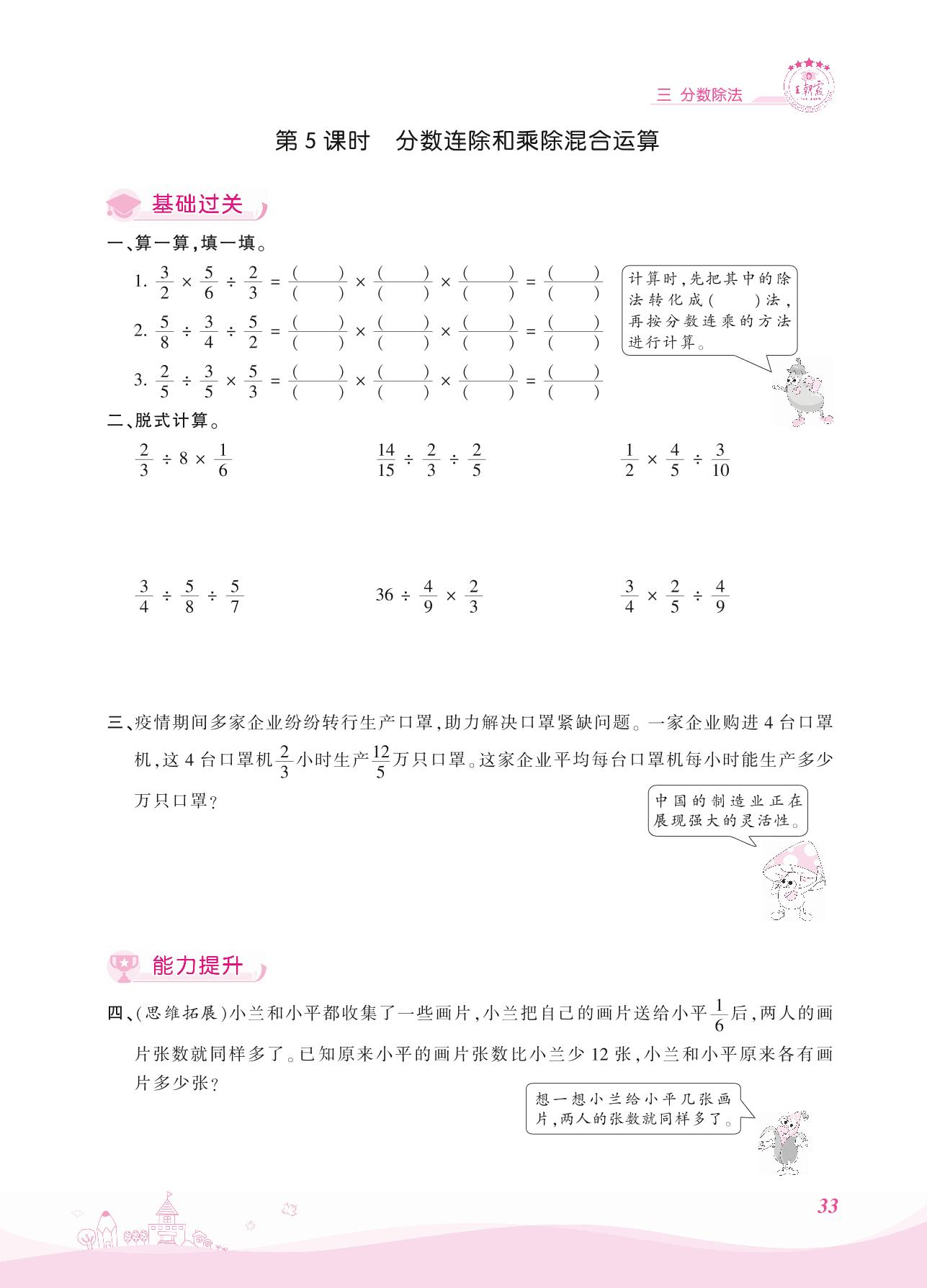 2021上册六年级数学苏教版 三 分数除法——第5课时 分数连除和乘除混合运算