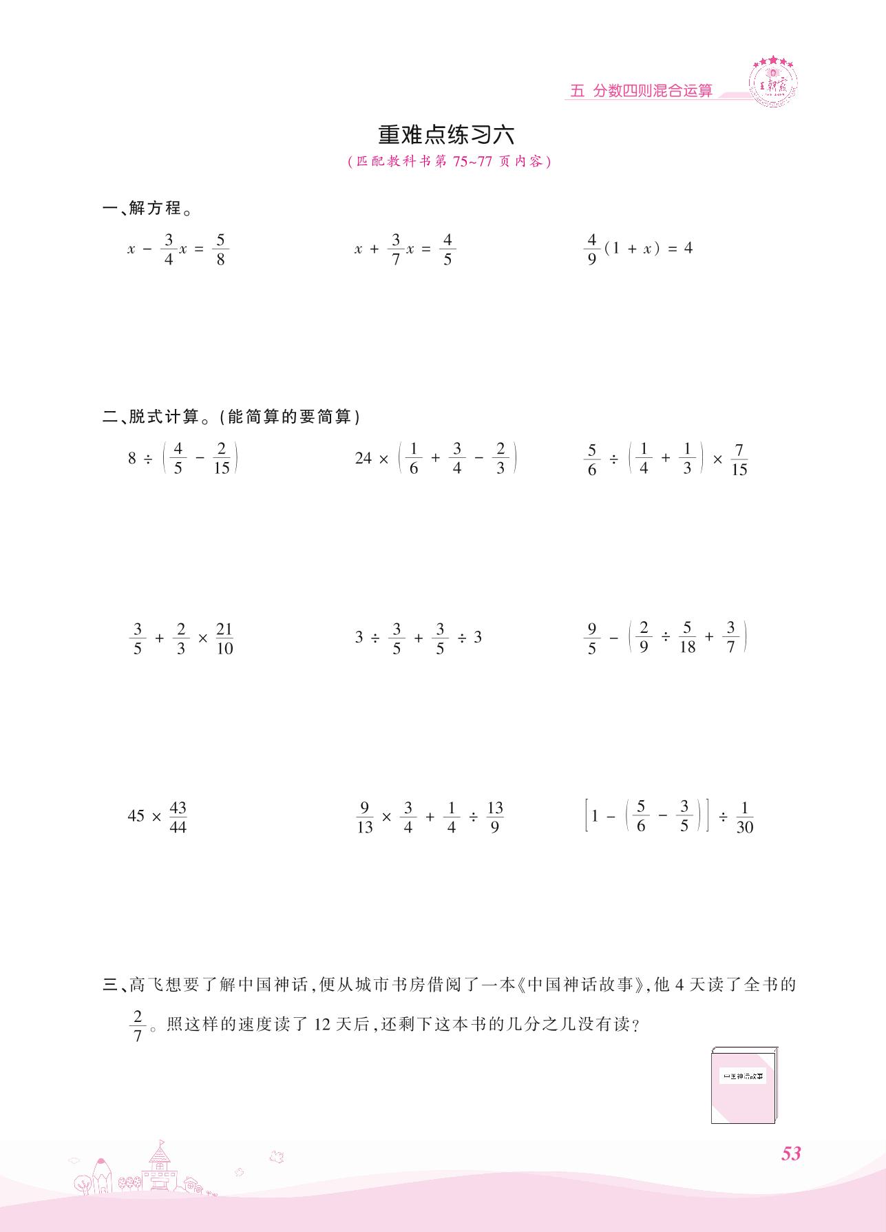 2021上册六年级数学苏教版 五 分数四则混合运算——重难点练习六