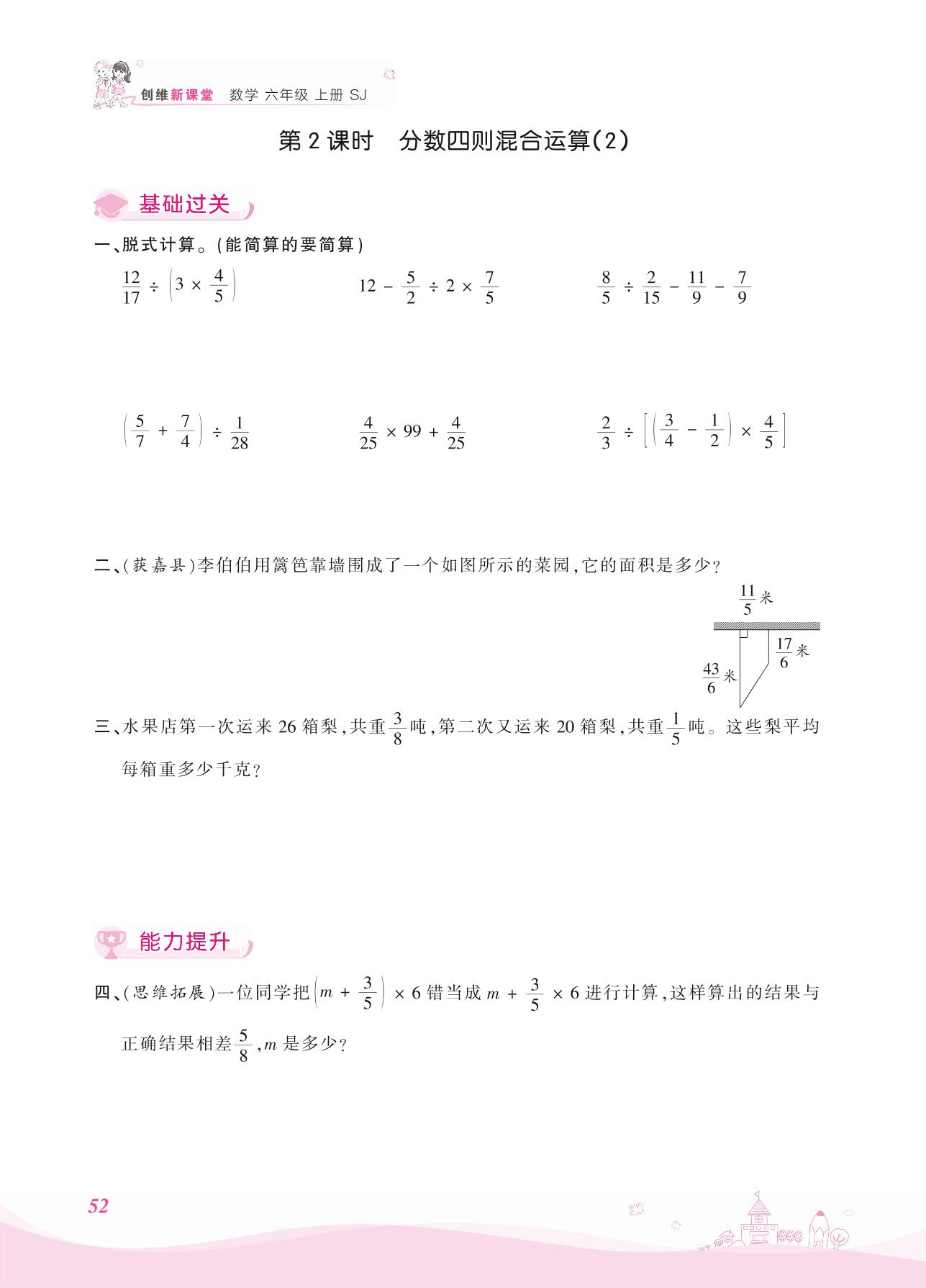 2021上册六年级数学苏教版 五 分数四则混合运算——第2课时 分数四则混合运算(2)
