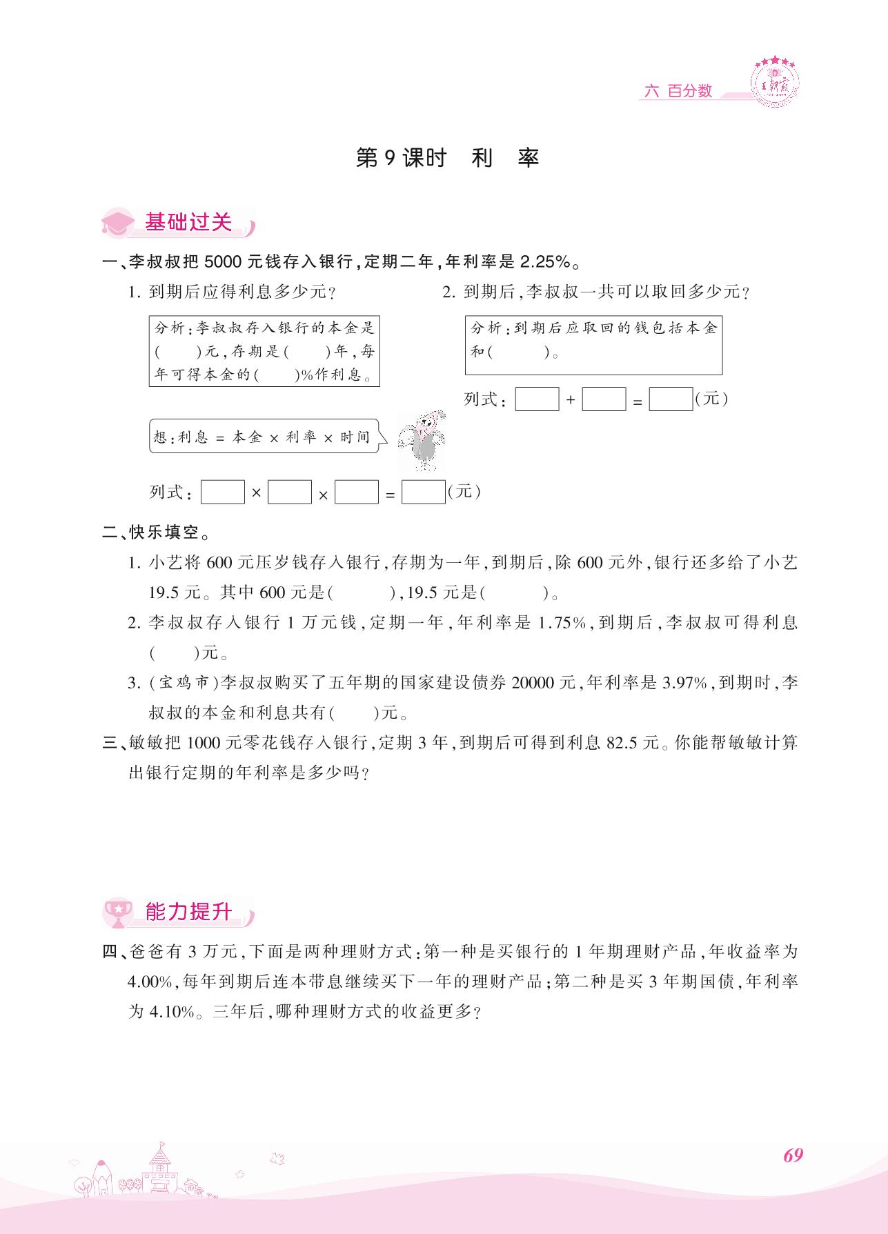 2021上册六年级数学苏教版 六 百分数——第9课时 利率