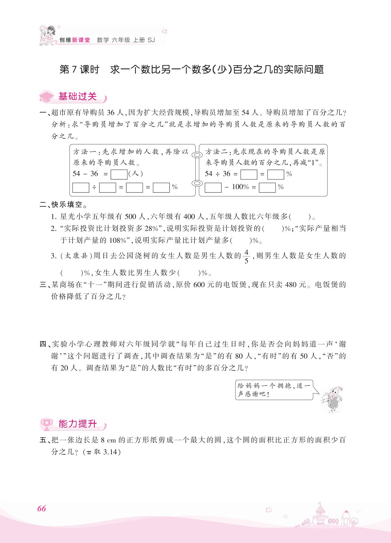 2021上册六年级数学苏教版 六 百分数——第7课时 求一个数比另一个数多(少)百分之几的实际问题
