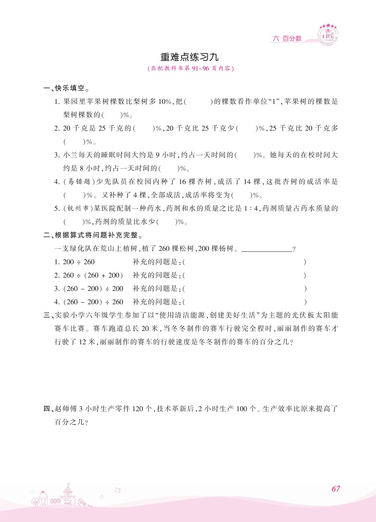 2021上册六年级数学苏教版 六 百分数——重难点练习九