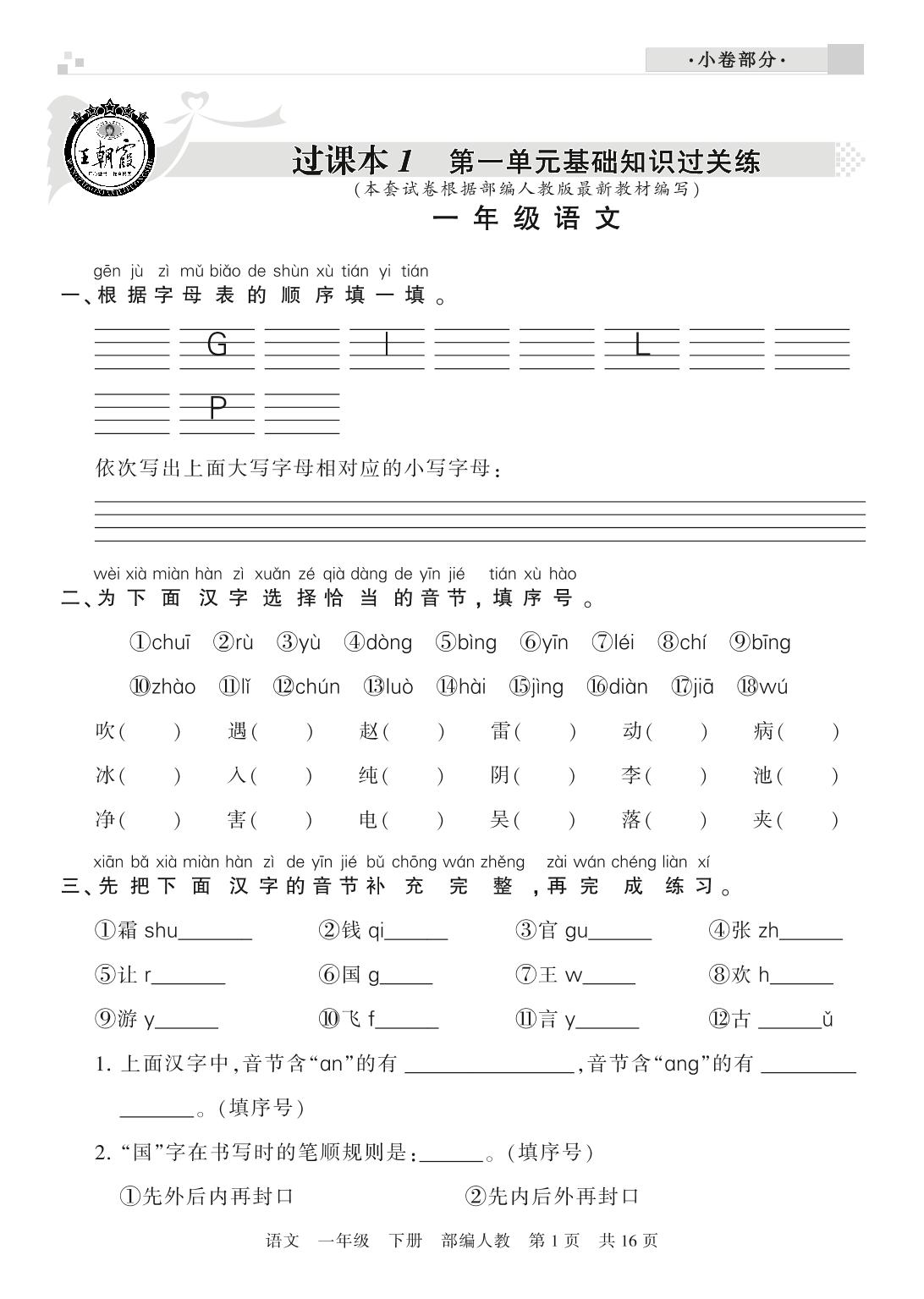 王朝霞期末过课本一年级下册语文(人教版)_R210731181907【0】