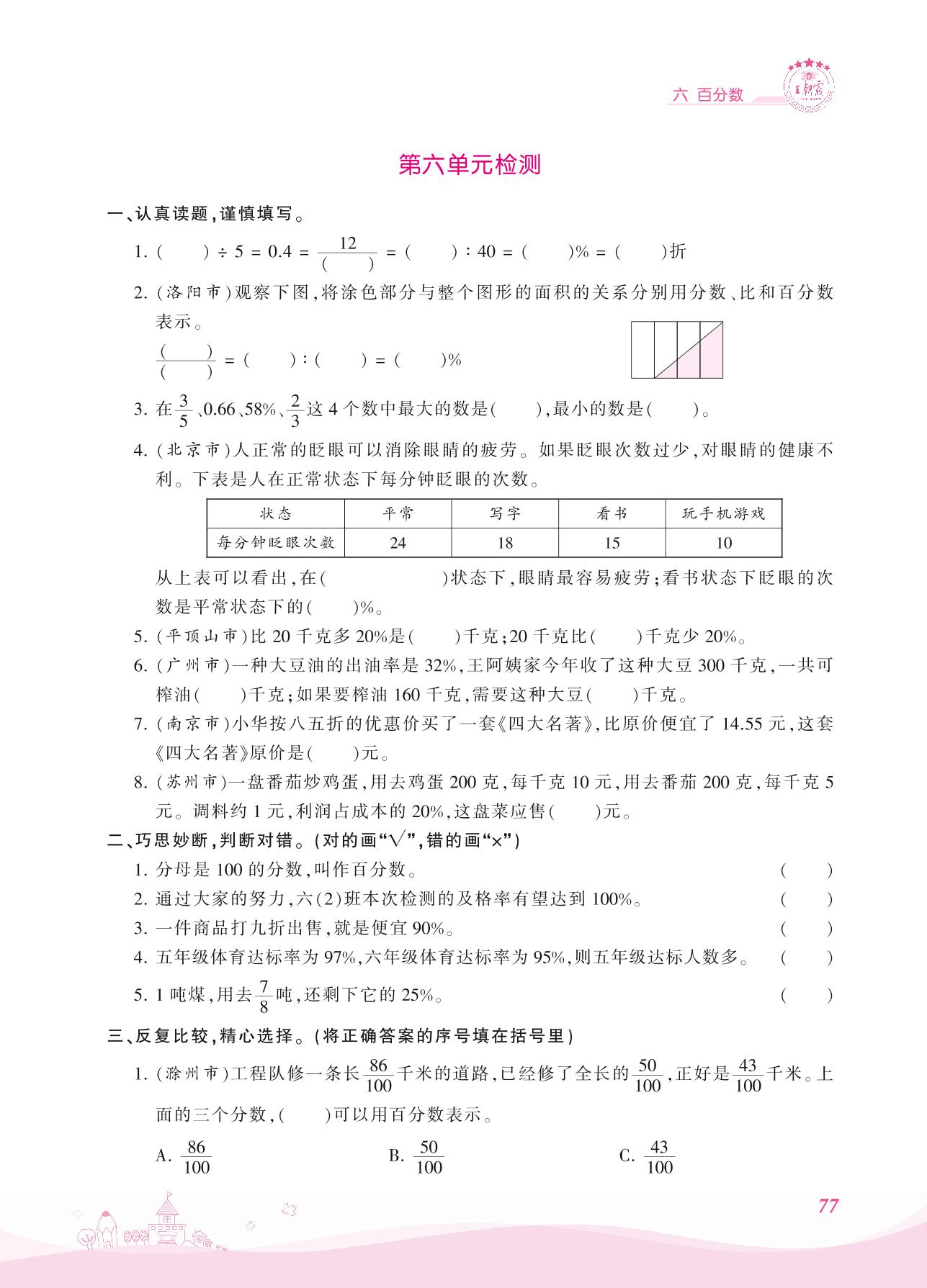 六年级数学苏教版上册单元卷