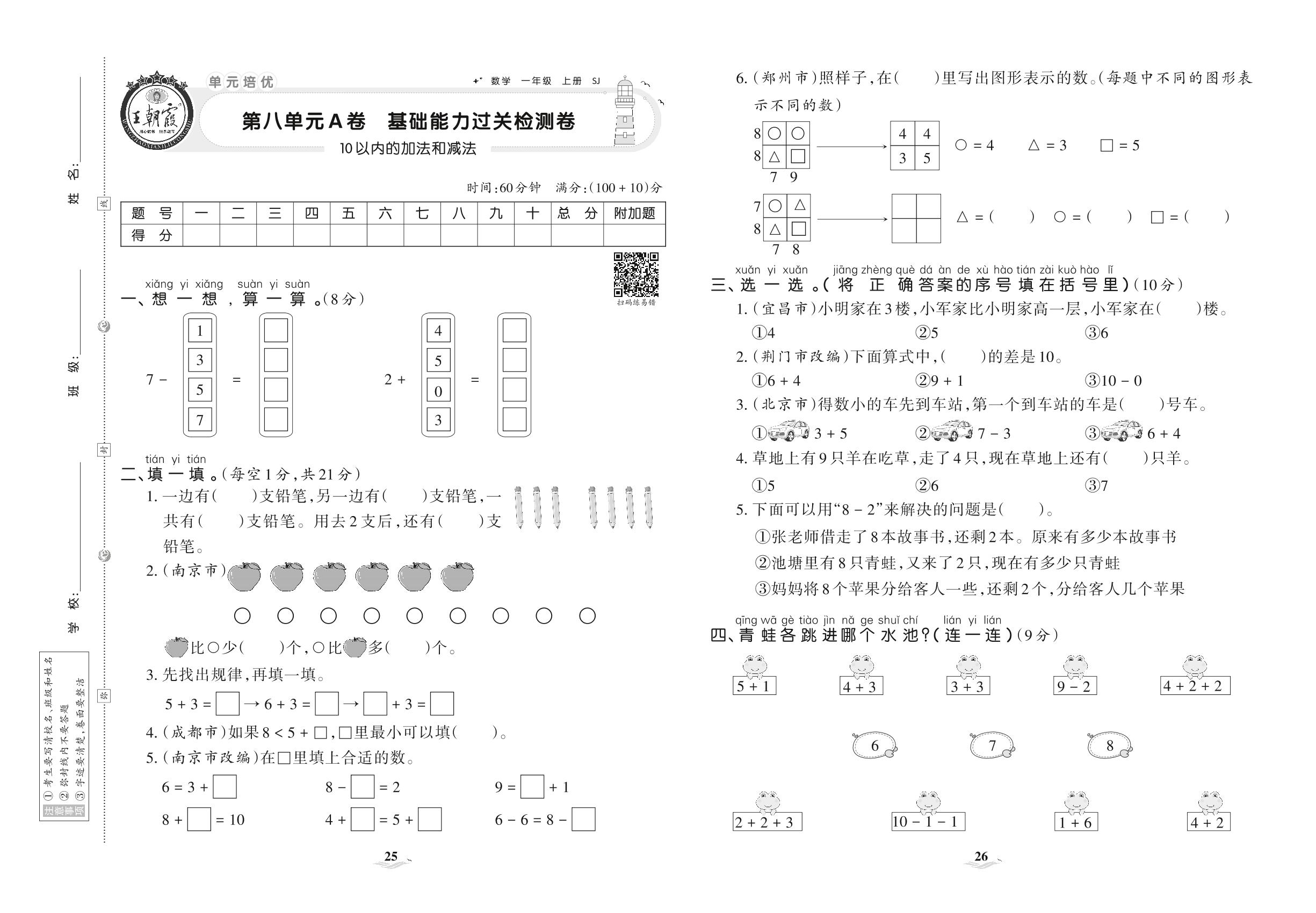 一年级数学苏教版上册单元卷