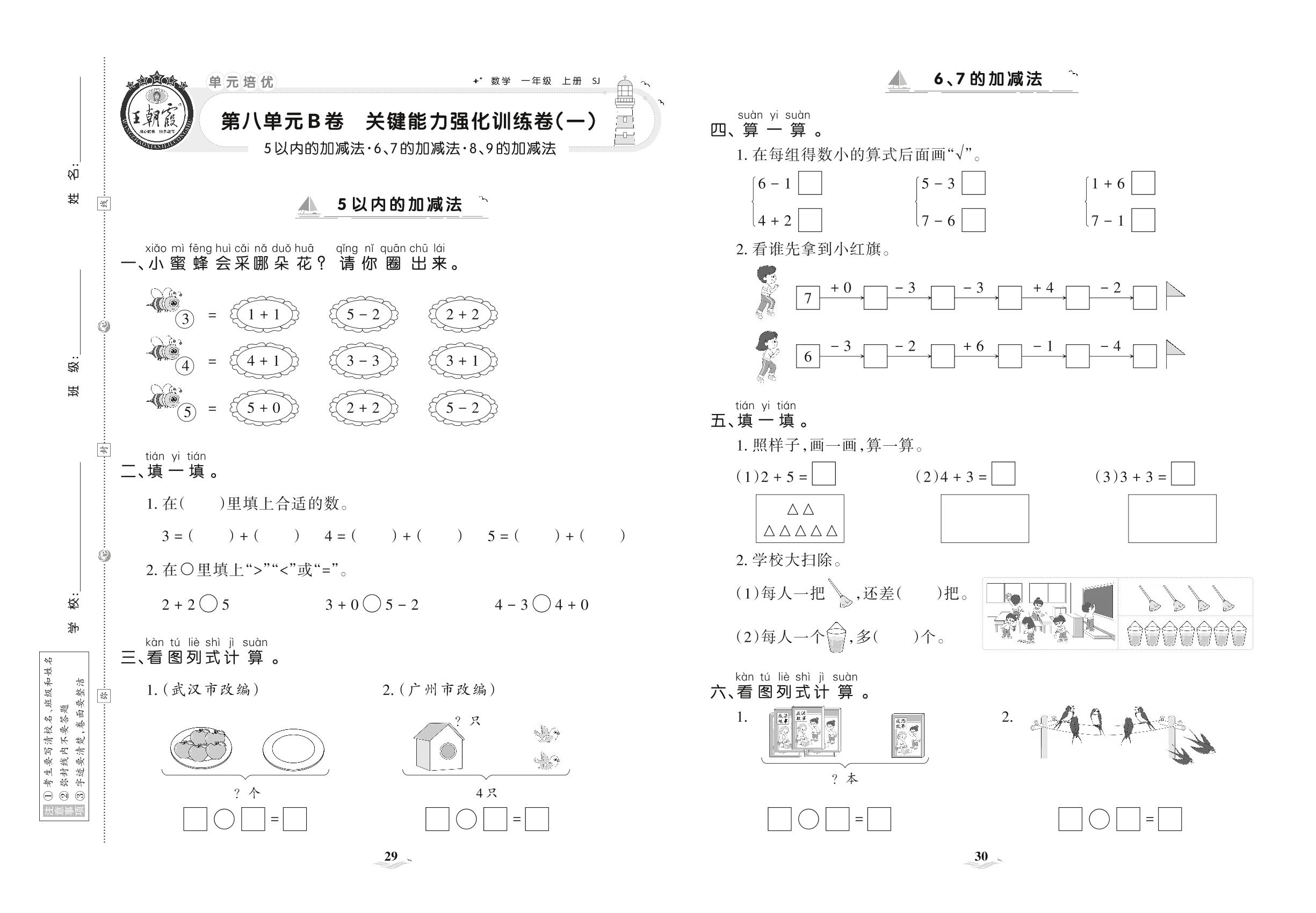 2021上册一年级数学苏教版 第八单元B卷 关键能力强化训练卷(一)