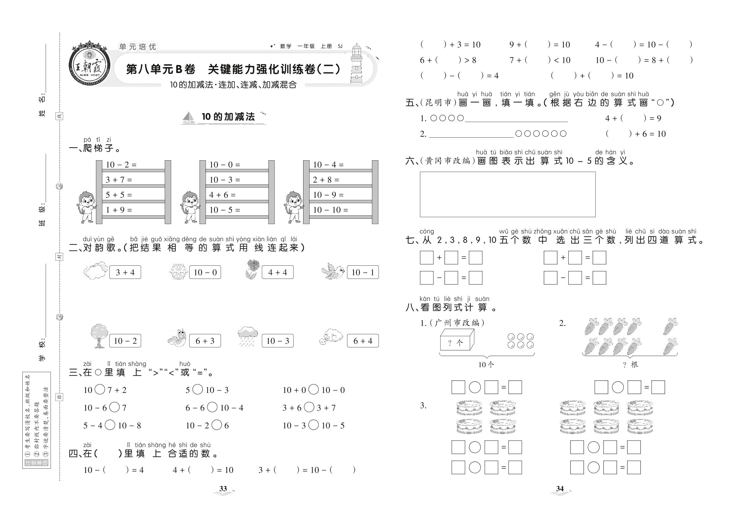 2021上册一年级数学苏教版 第八单元B卷 关键能力强化训练卷(二)