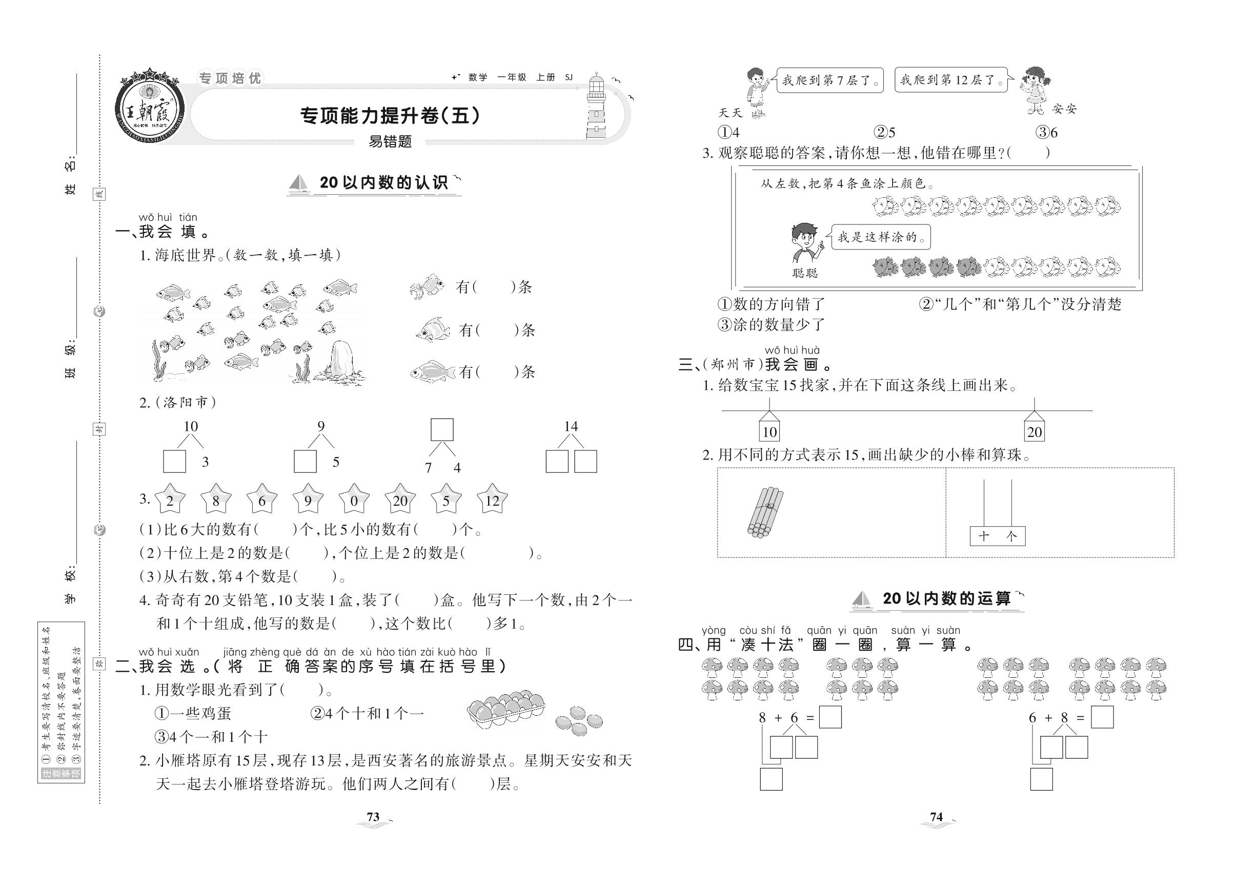 2021上册一年级数学苏教版 专项能力提升卷(五) 易错题