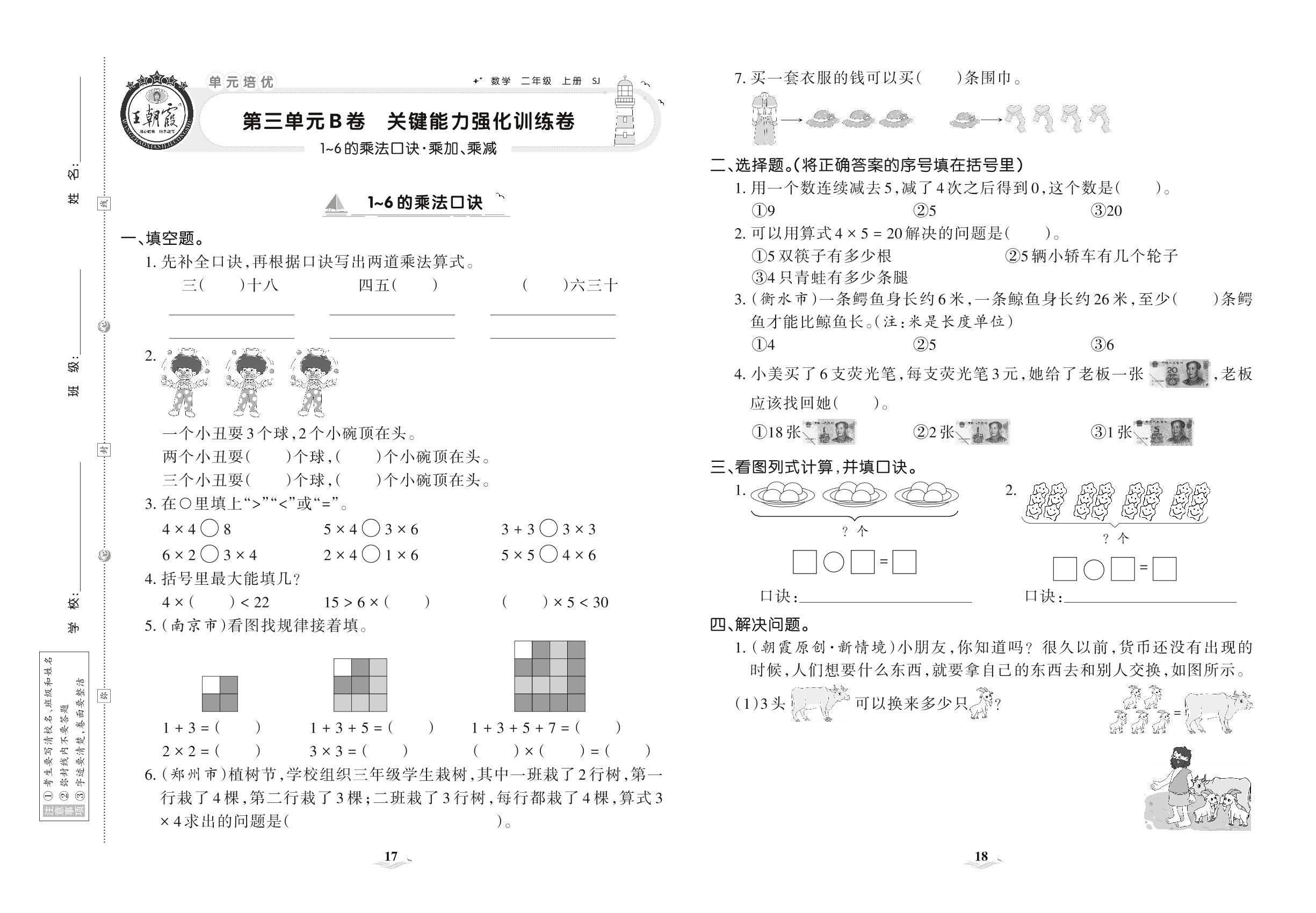 2021上册二年级数学苏教版 第三单元B卷 关键能力强化训练卷