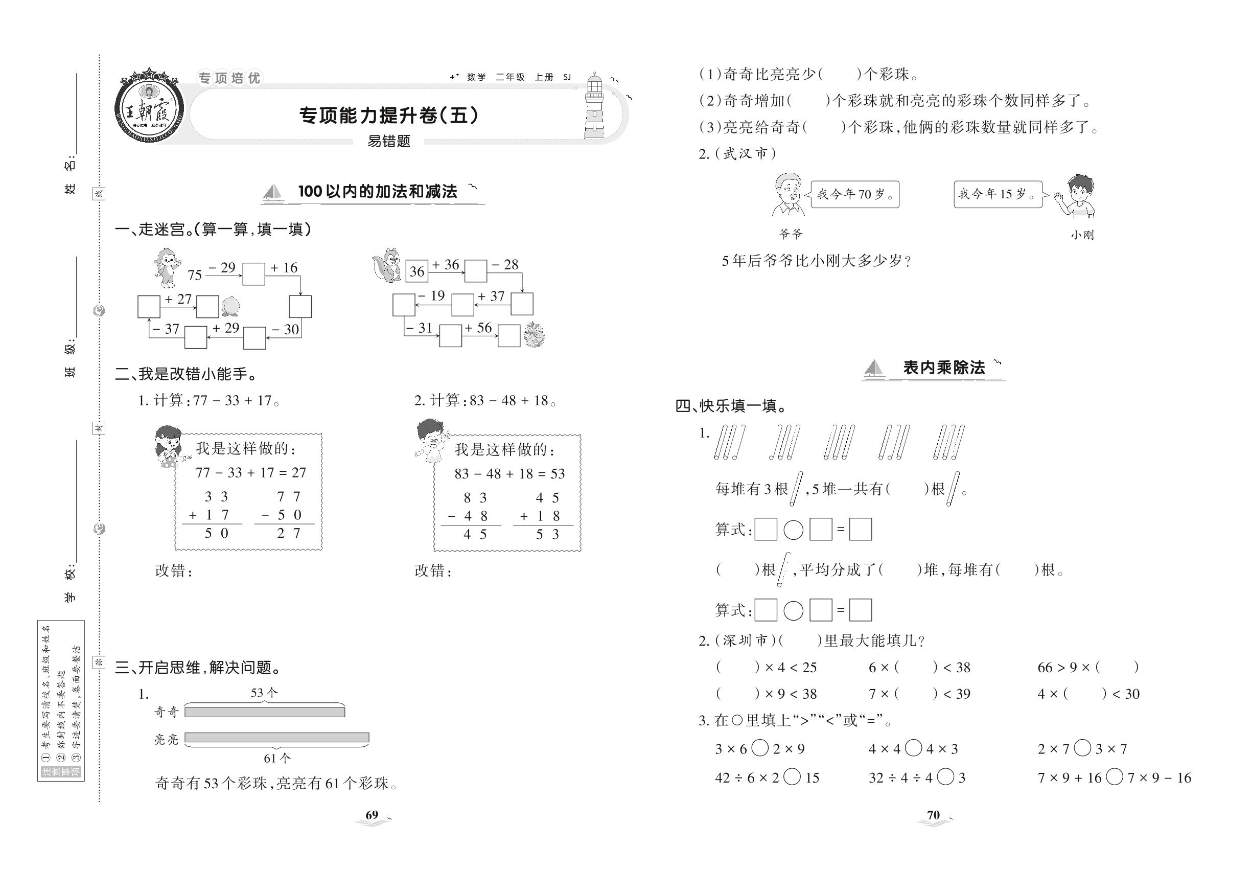 2021上册二年级数学苏教版 专项能力提升卷(五) 易错题