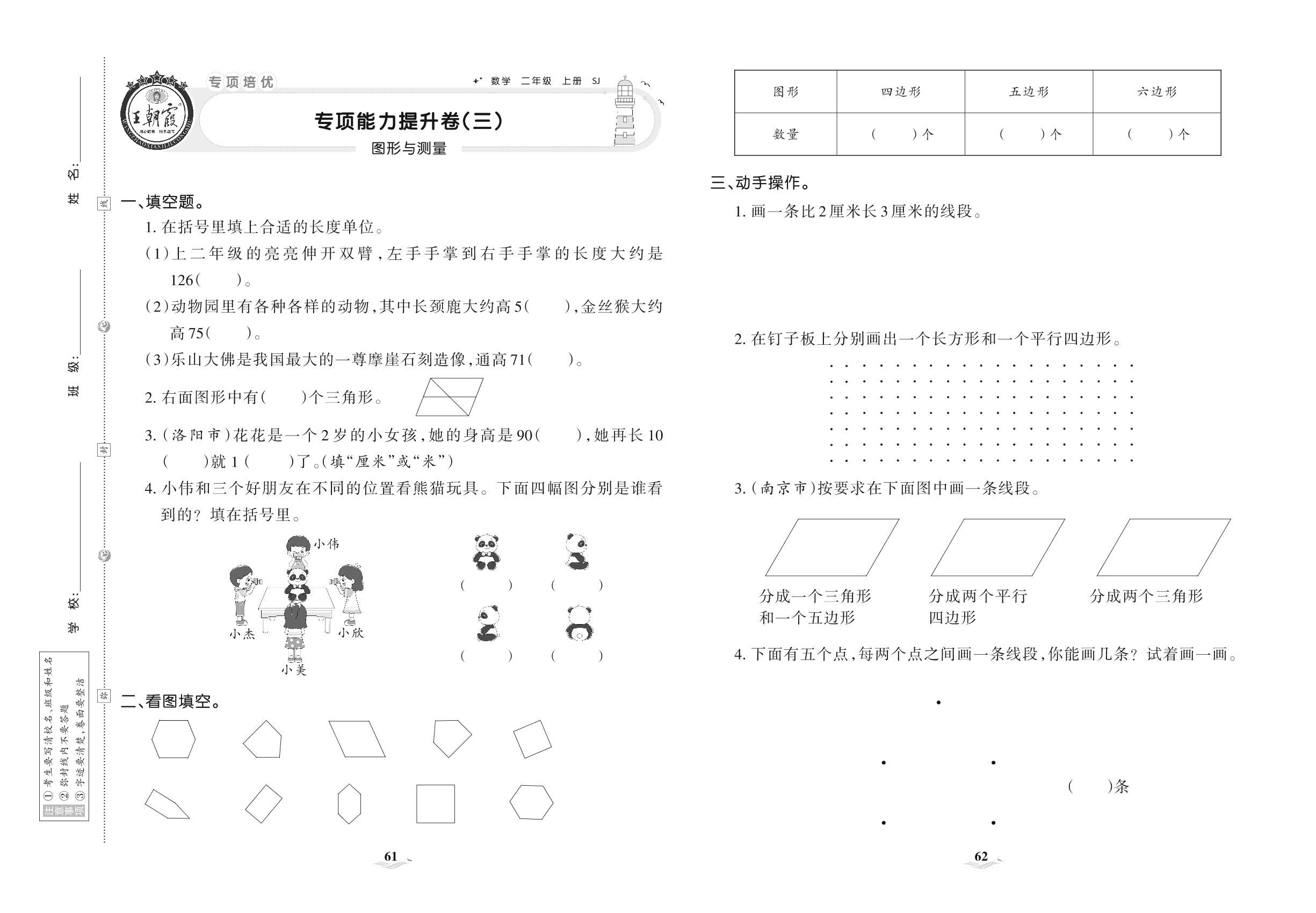 2021上册二年级数学苏教版 专项能力提升卷(三) 图形与测量