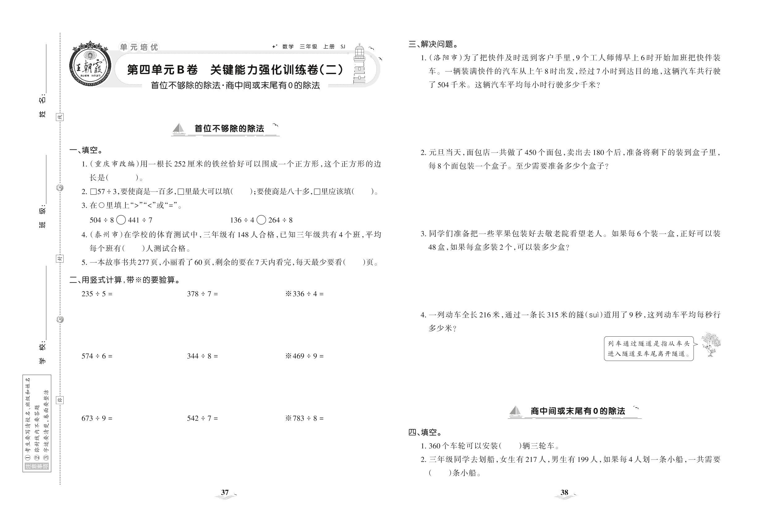 2021上册三年级数学苏教版 第四单元B卷 关键能力强化训练卷(二)