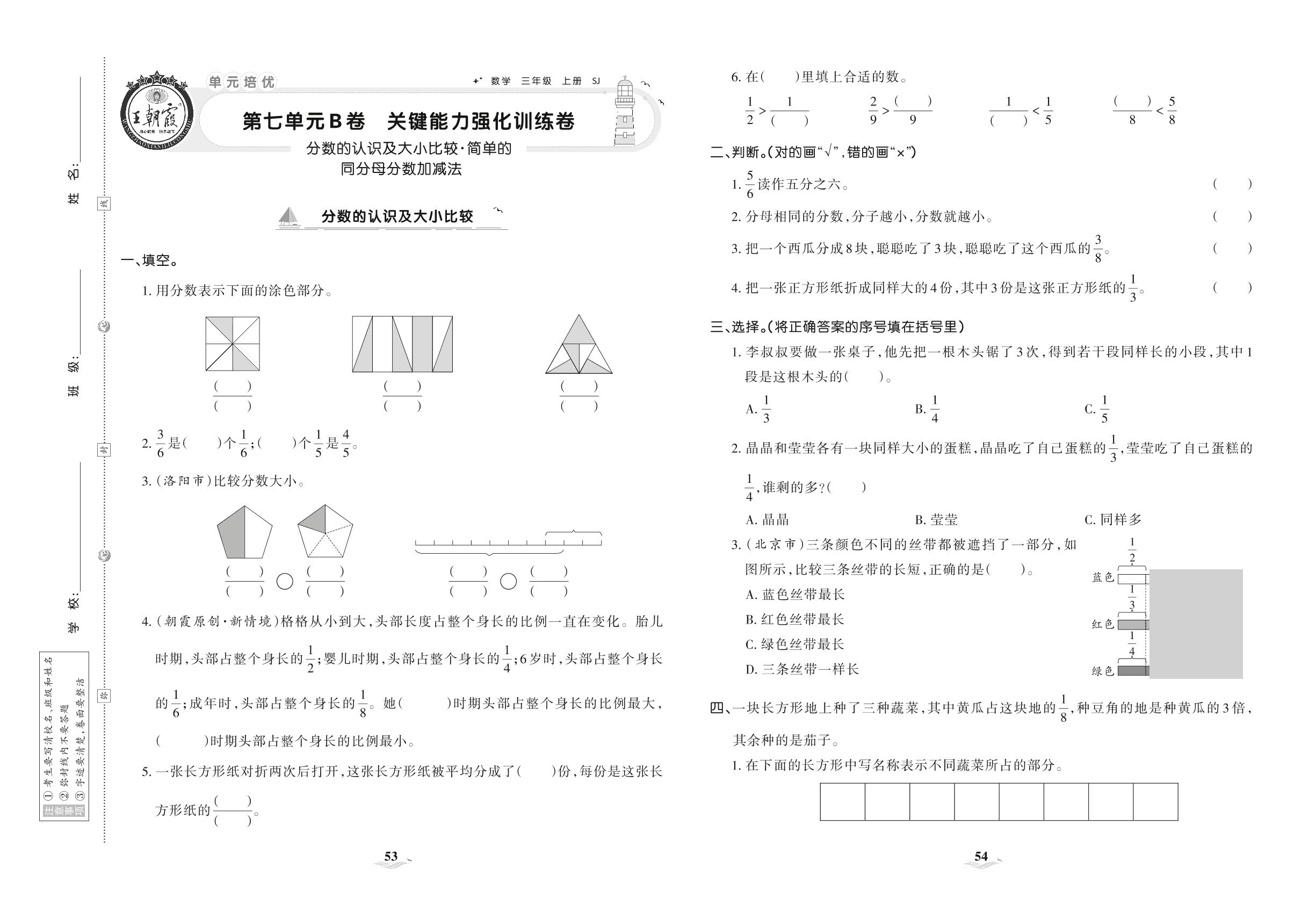 2021上册三年级数学苏教版 第七单元B卷 关键能力强化训练卷