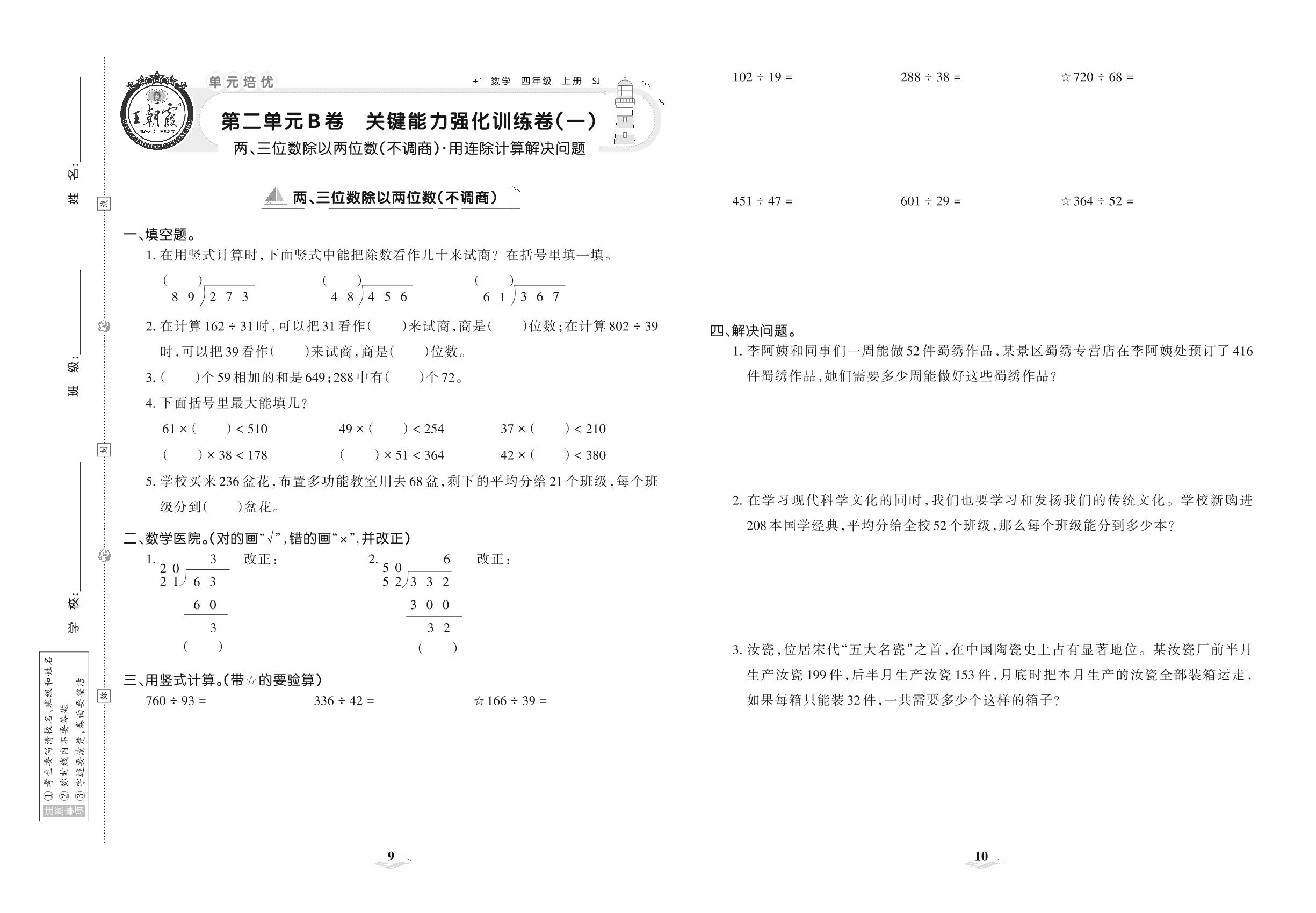 四年级数学苏教版上册单元卷