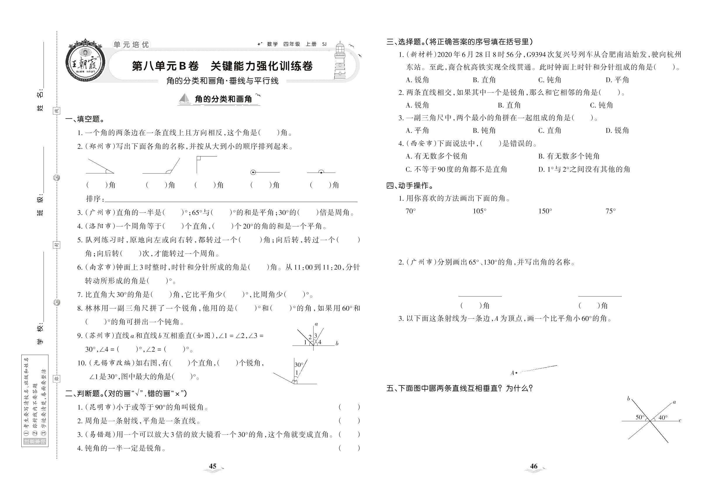 四年级数学苏教版上册单元卷