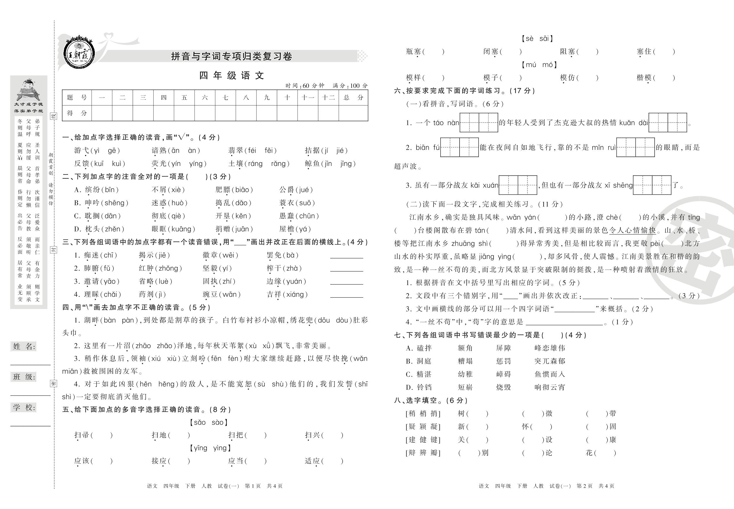 王朝霞期末专项卷四年级下册语文(人教版)_R210801211624【1】