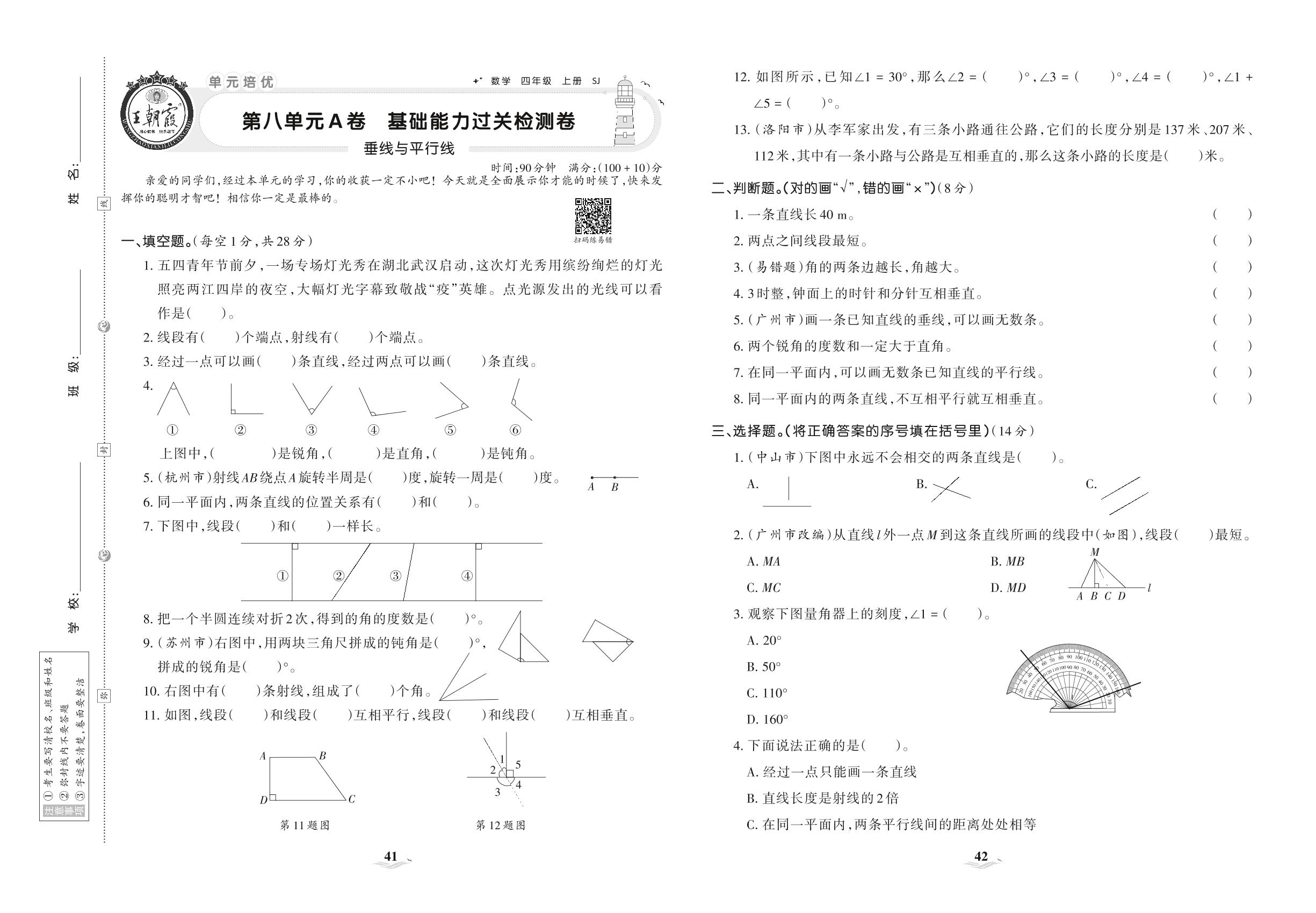 2021上册四年级数学苏教版 第八单元A卷 基础能力过关检测卷