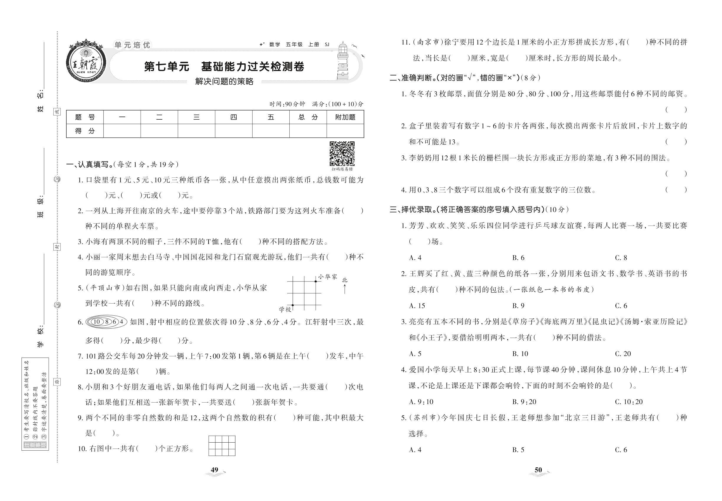 2021上册五年级数学苏教版 第七单元 基础能力过关检测卷