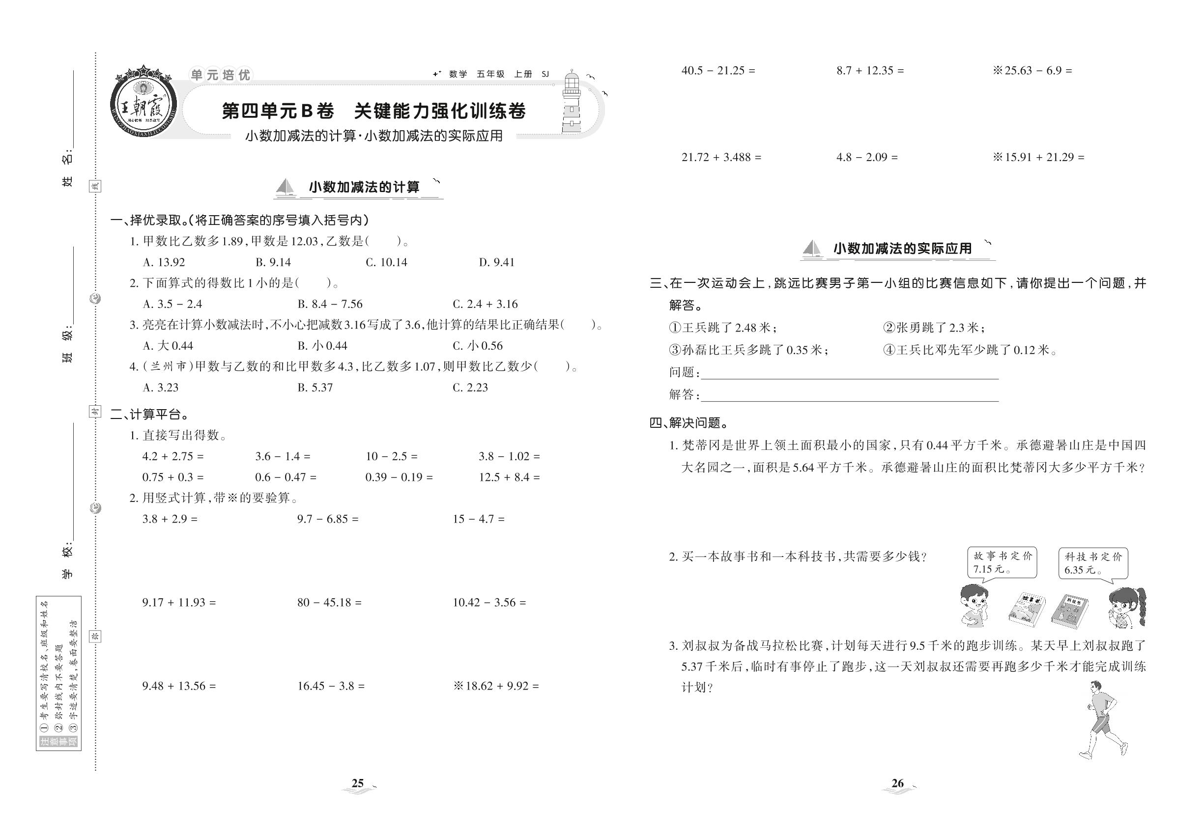 2021上册五年级数学苏教版 第四单元B卷 关键能力强化训练卷