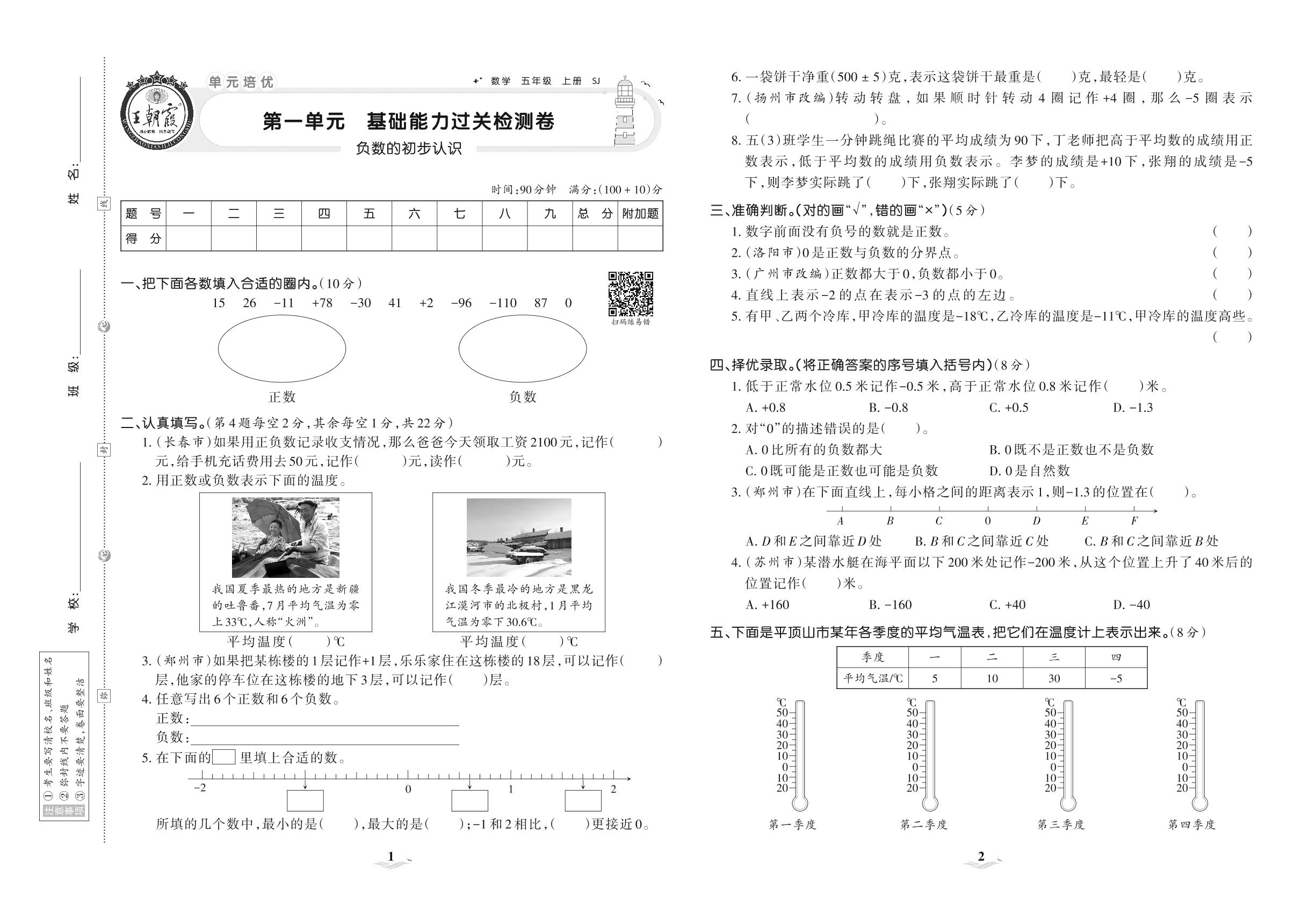 2021上册五年级数学苏教版 第一单元 基础能力过关检测卷