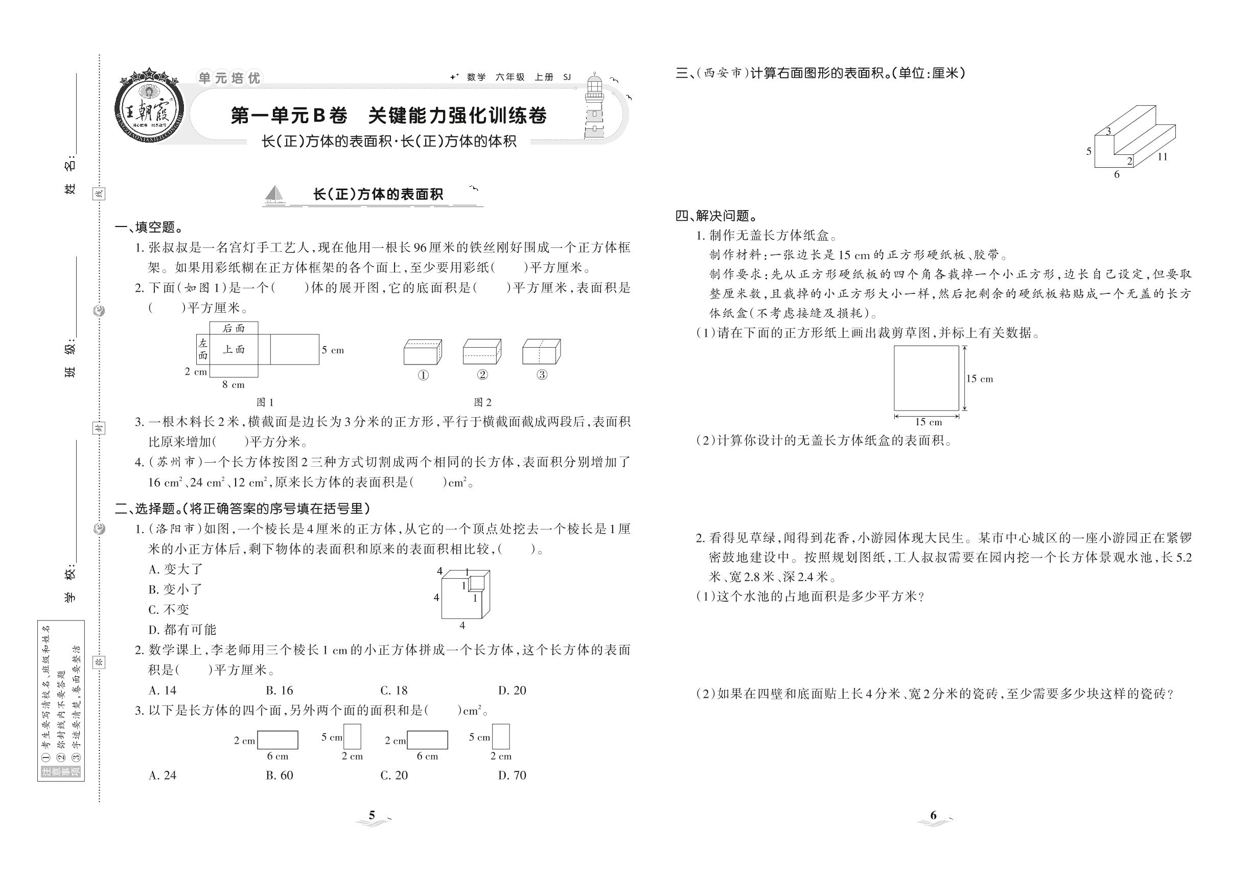 2021上册六年级数学苏教版 第一单元B卷 关键能力强化训练卷