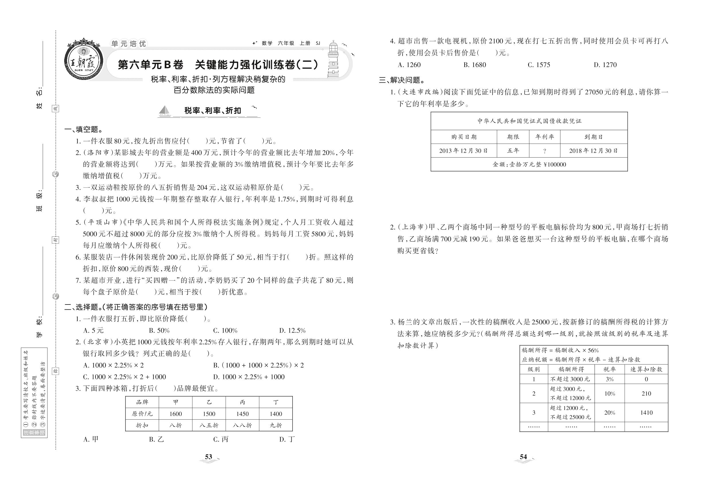2021上册六年级数学苏教版 第六单元B卷 关键能力强化训练卷(二)