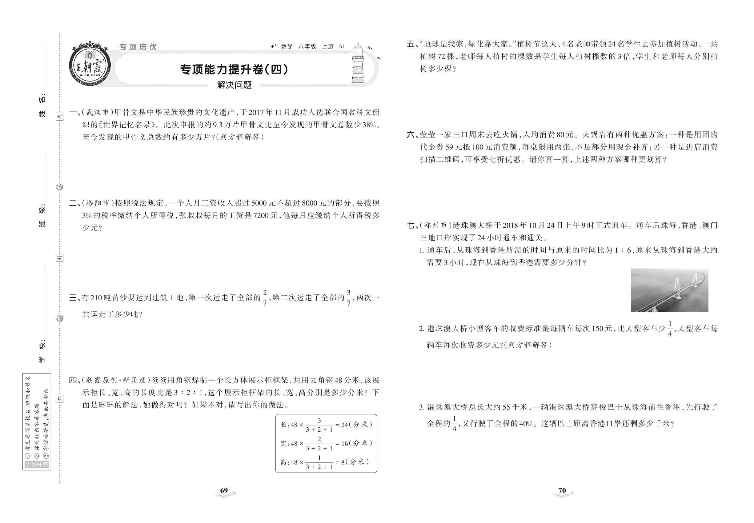 2021上册六年级数学苏教版 专项能力提升卷(四) 解决问题